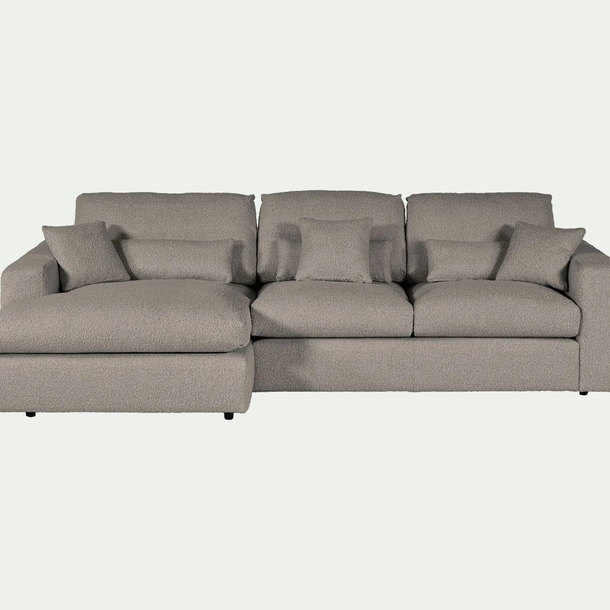 Avec son petit angle à gauche, ce canapé d’angle est une invitation aux moments partagés. Son revêtement en tissu bouclette, à la fois doux et résistant, enveloppe l’espace d’une chaleur réconfortante. Son coloris gris clair, intemporel, s’harmonise avec tous les styles d’intérieur. Pensé pour le confort, ce canapé fixe se compose d’une assise spacieuse, d’un dossier accueillant et de coussins déhoussables pour un entretien facilité. Des coussins décoratifs viennent parfaire l’ensemble, ajoutant une touche cosy. Un canapé idéal pour des instants de détente en famille ou entre amis.