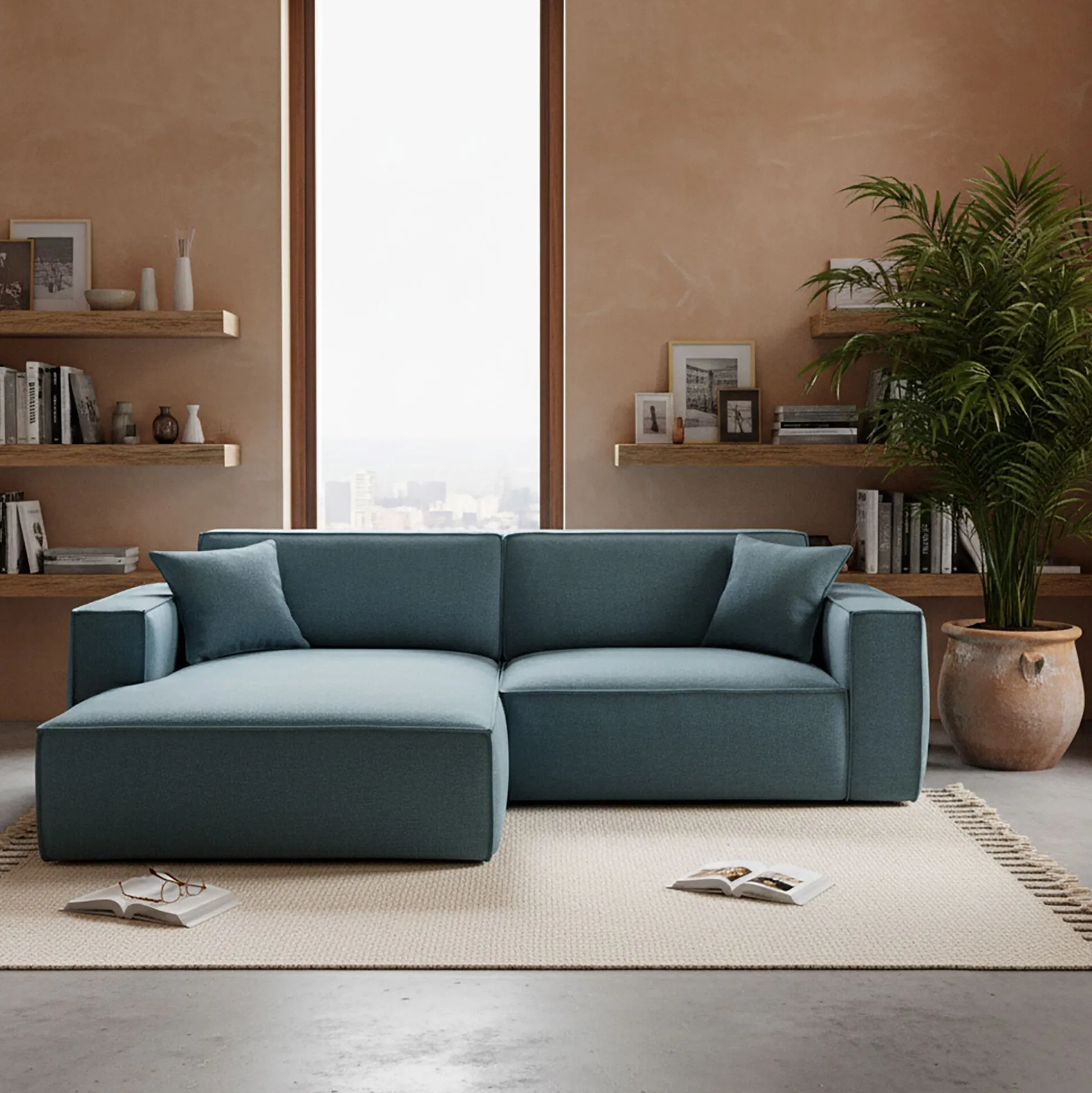 Canapé petit angle gauche fixe en tissu genesis – bleu