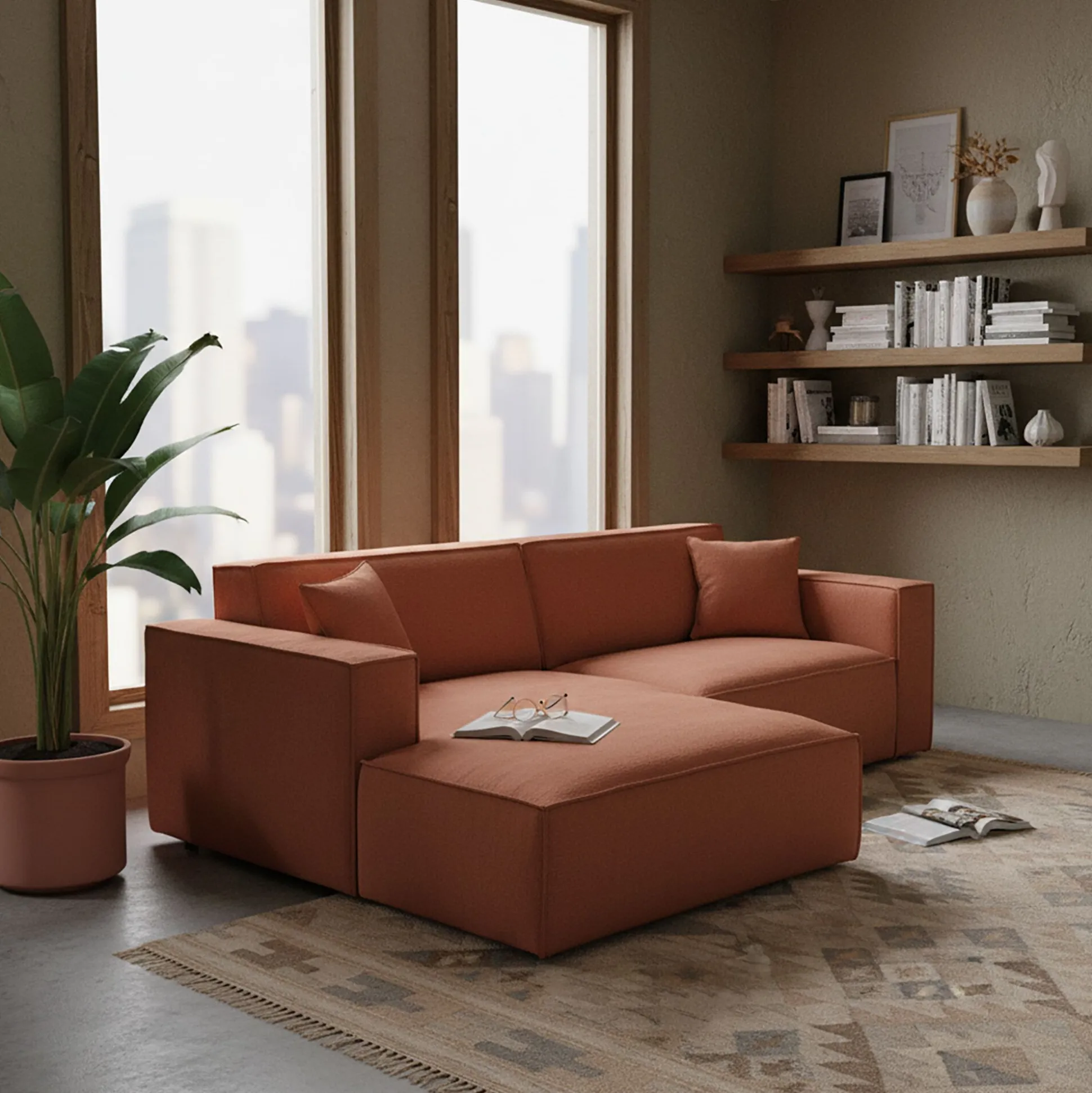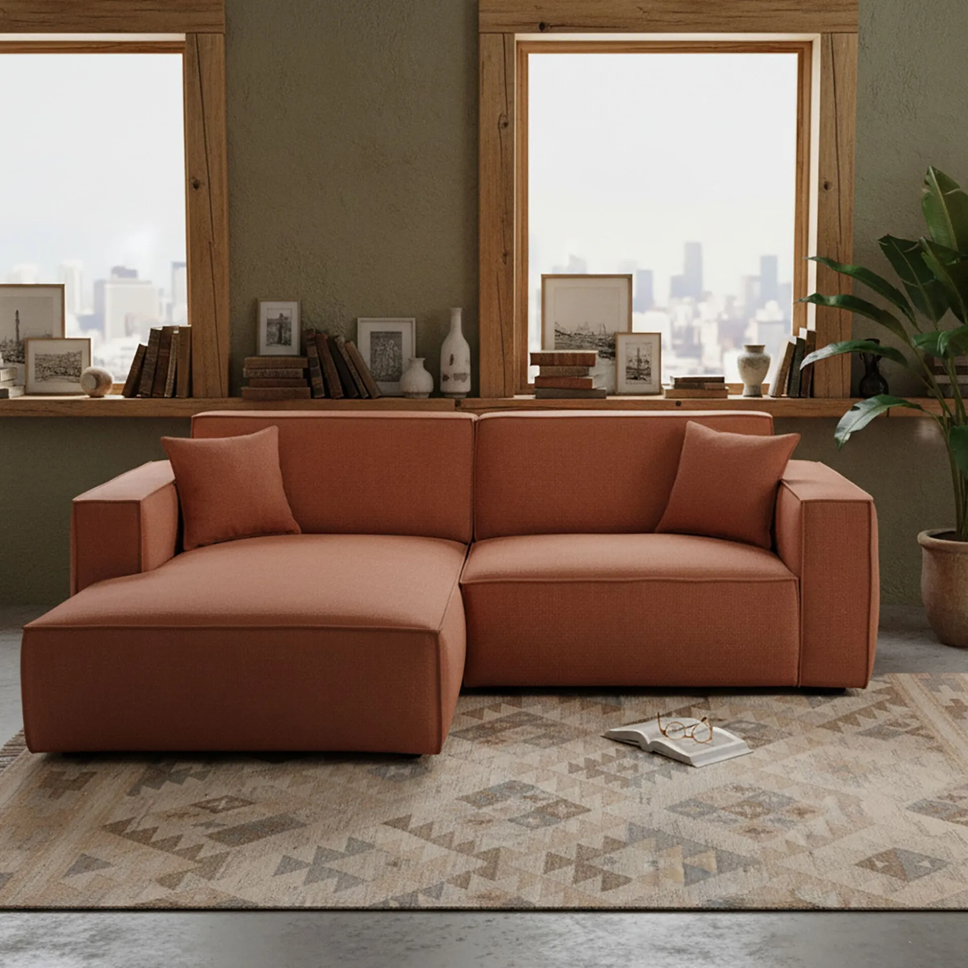 Compact et élégant, le canapé d’angle gauche Kubo est la pièce idéale pour aménager un petit salon sans compromis sur le style et le confort. Ses lignes épurées et son design rectangulaire apportent une touche contemporaine à votre intérieur, tandis que son assise moelleuse invite à la détente. Parfait pour deux personnes, il crée un espace cosy où se retrouver, que ce soit pour un moment de lecture ou un apéritif entre amis. Son revêtement en tissu genesis dans un coloris brun rustrel participe à une atmosphère chaleureuse et s’adapte facilement à toutes les ambiances. Fabriqué en Ukraine, ce petit canapé fixe allie durabilité et esthétique pour un intérieur raffiné.