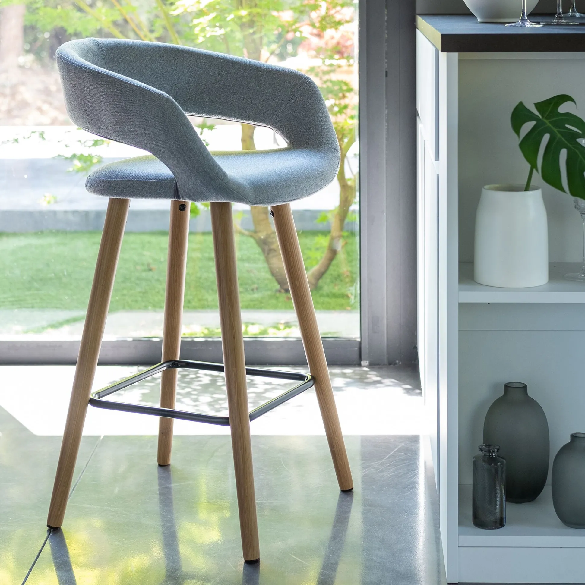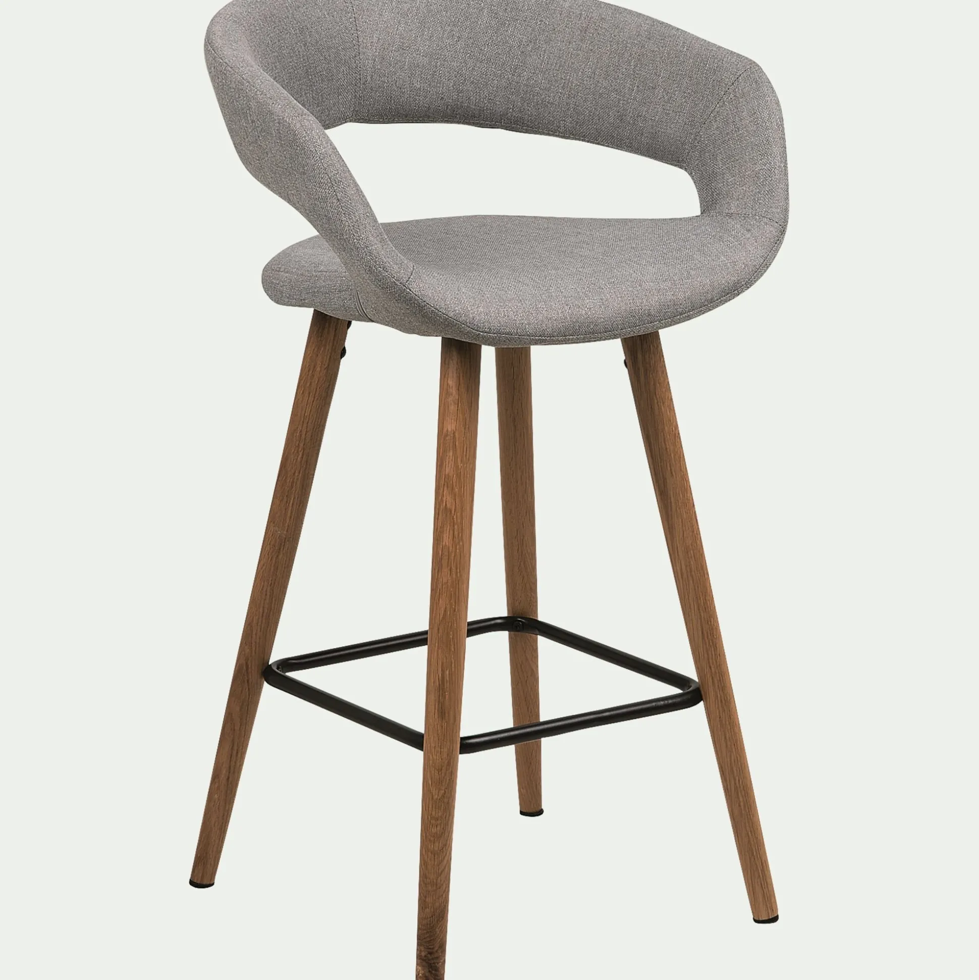 Son style à la fois moderne et indémodable donne au tabouret haut Joyau une élégance incomparable. Haut de 65,5 cm, muni d’harmonieux accoudoirs et d’une assise en mousse de 26 kg /m3, il offre un grand confort. Son piétement en chêne massif huilé et son doux tissu gris en font un partenaire idéal pour vos moments de convivialité autour du bar. Vous trouverez dans la même gamme les chaises assorties.