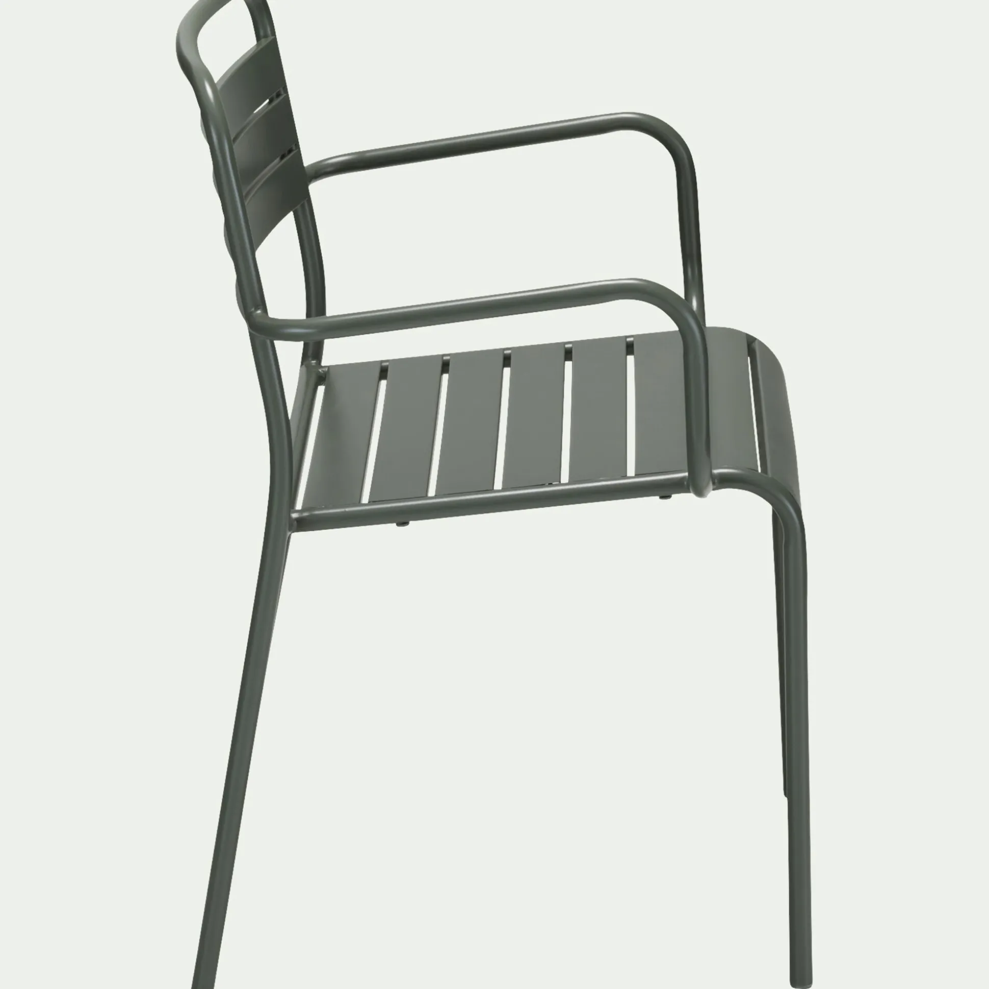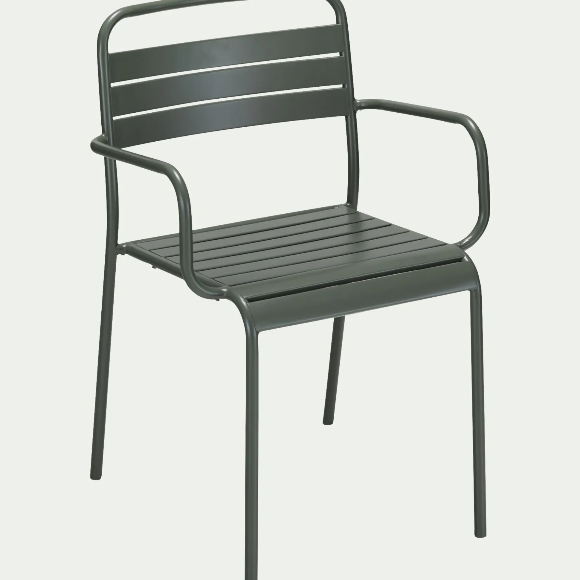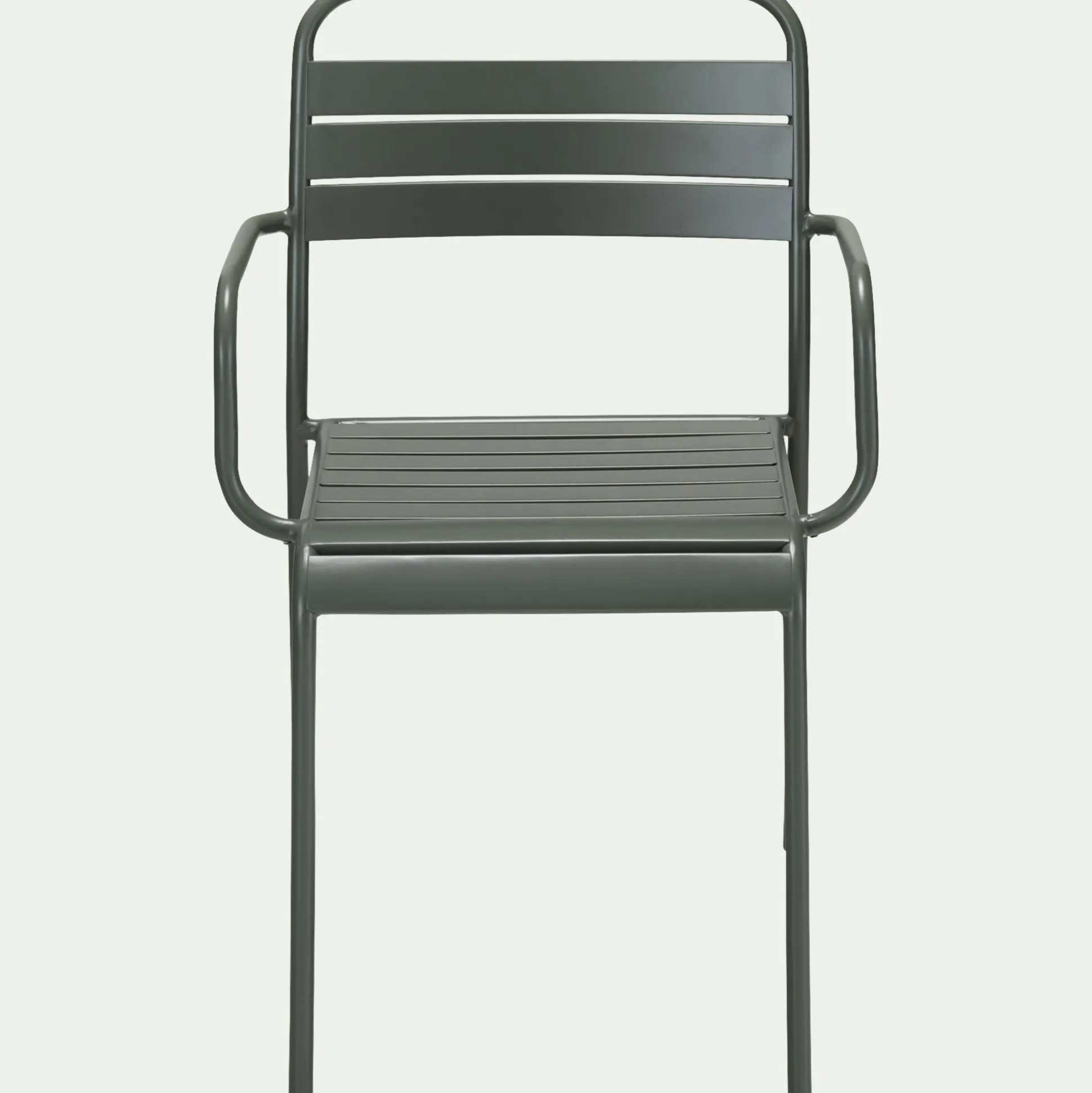 Chaise de jardin avec accoudoirs en acier – vert cèdre