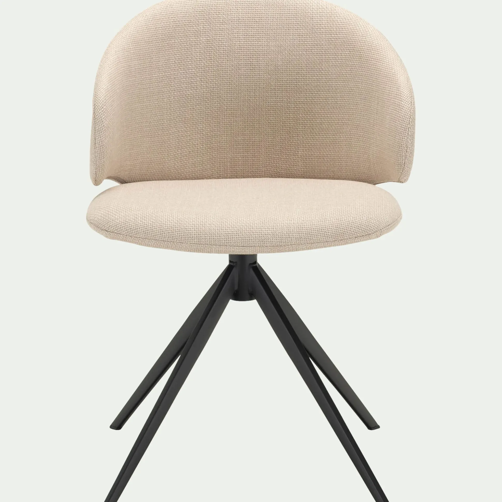 Avec son revêtement en tissu beige, cette chaise de repas allie confort et élégance en toute simplicité. Son assise généreuse et son dossier bien rembourré en font un siège agréable pour les repas prolongés. Pivotante, elle offre une liberté de mouvement idéale au quotidien. Son piètement en acier noir au design graphique affirme un style contemporain, tout en assurant stabilité et solidité. Une chaise en tissu fonctionnelle qui ne fait aucun compromis sur le style.