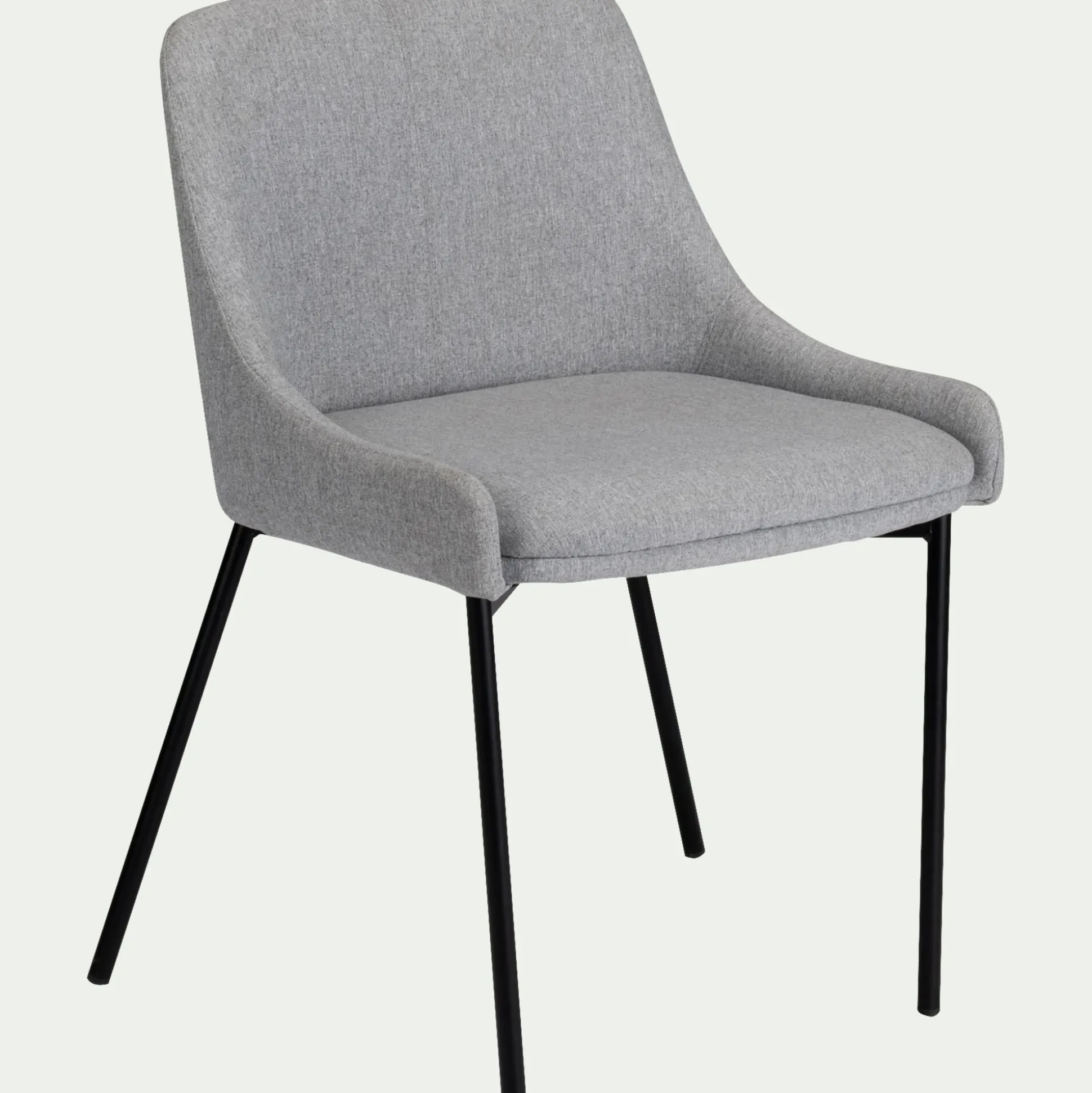 Pour venir compléter votre table dans votre salle à manger ou séjour, optez pour cette jolie chaise en tissu, avec des pieds en acier. Cette assise est revêtue par une mousse d’une épaisseur de 2cm, le tout recouvert par un joli tissu gris, afin de vous offrir le maximum de confort. Vous pouvez ajouter un petit coussin pour égayer votre déco.