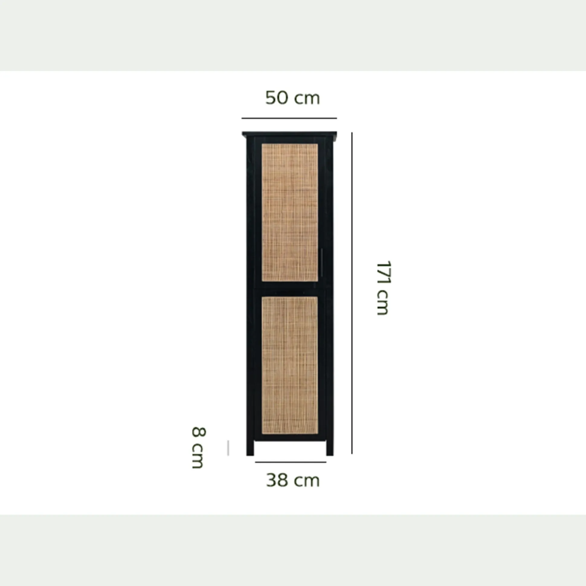 Colonne de salle de bain en bois de cèdre et cannage – H171cm