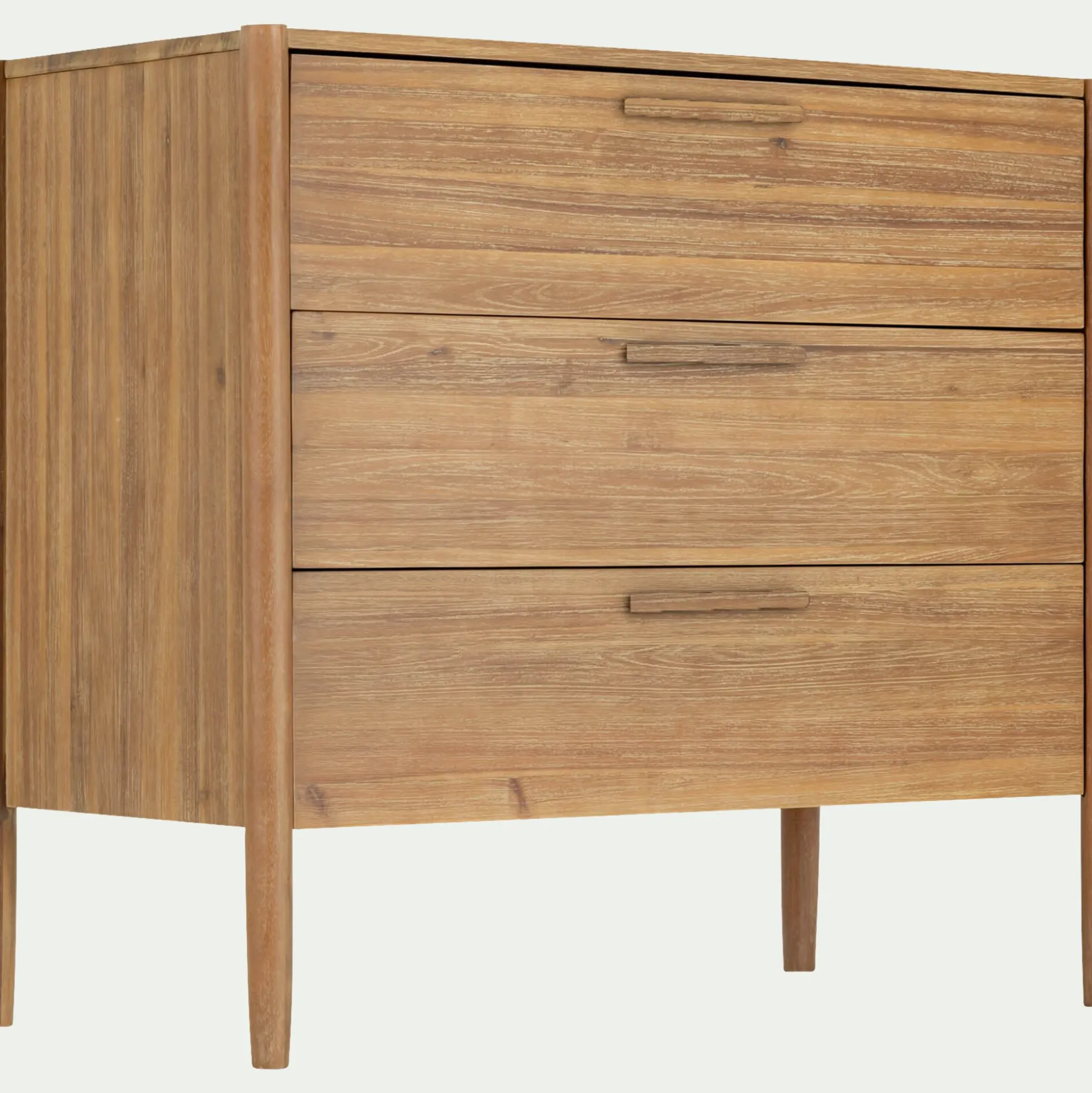 Tiroirs en acacia et contreplaqué.
