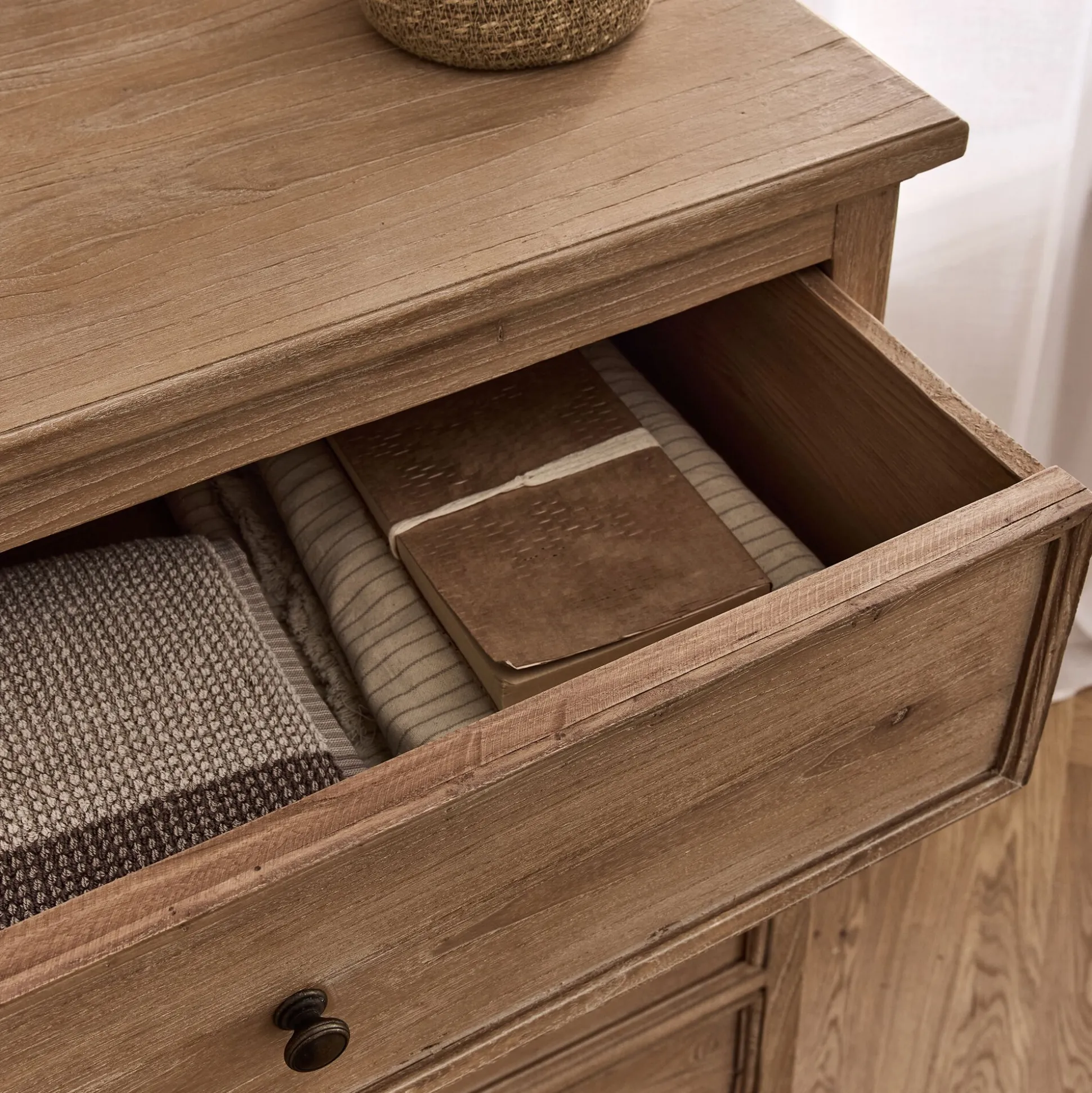 La commode Alysse allie charme rustique et format pratique. Confectionnée en bois d’orme et de pin, elle séduit par ses moulures travaillées et son esprit authentique. Haute de 110 cm pour une largeur de 85 cm, elle occupe peu de place tout en offrant un bel espace de rangement grâce à ses 4 tiroirs. Idéale dans une petite chambre, elle apporte chaleur et caractère à la pièce.