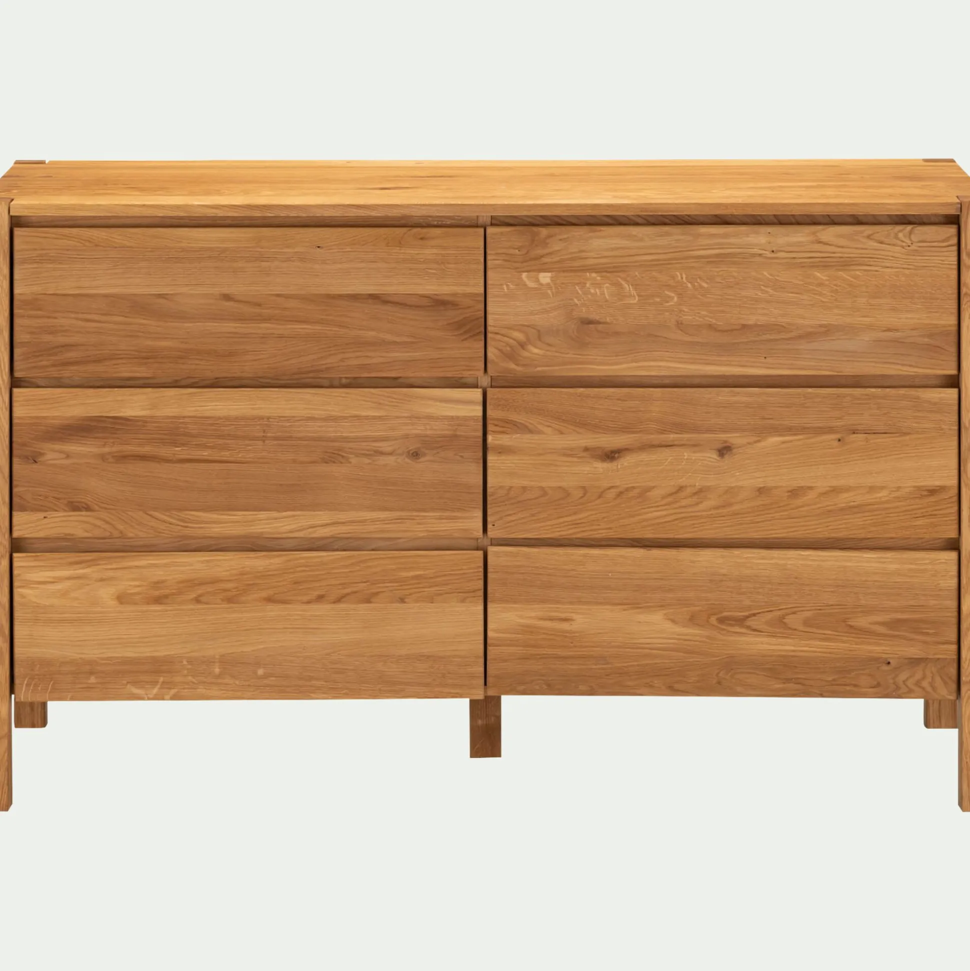 Cette grande commode en chêne offre une élégance intemporelle. Dotée de 6 tiroirs spacieux, elle facilite une organisation impeccable tout en mettant en valeur la matière naturelle. Ses poignées intégrées et son design minimaliste mettent en avant la beauté du chêne, lumineux et aux subtils reflets dorés. Parfaite pour une chambre, cette commode en bois apporte une touche de chaleur et d’authenticité. Ceintures, chapeaux, sous-vêtements… Chaque accessoire y trouve sa place pour une pièce fonctionnelle et agréable à vivre.