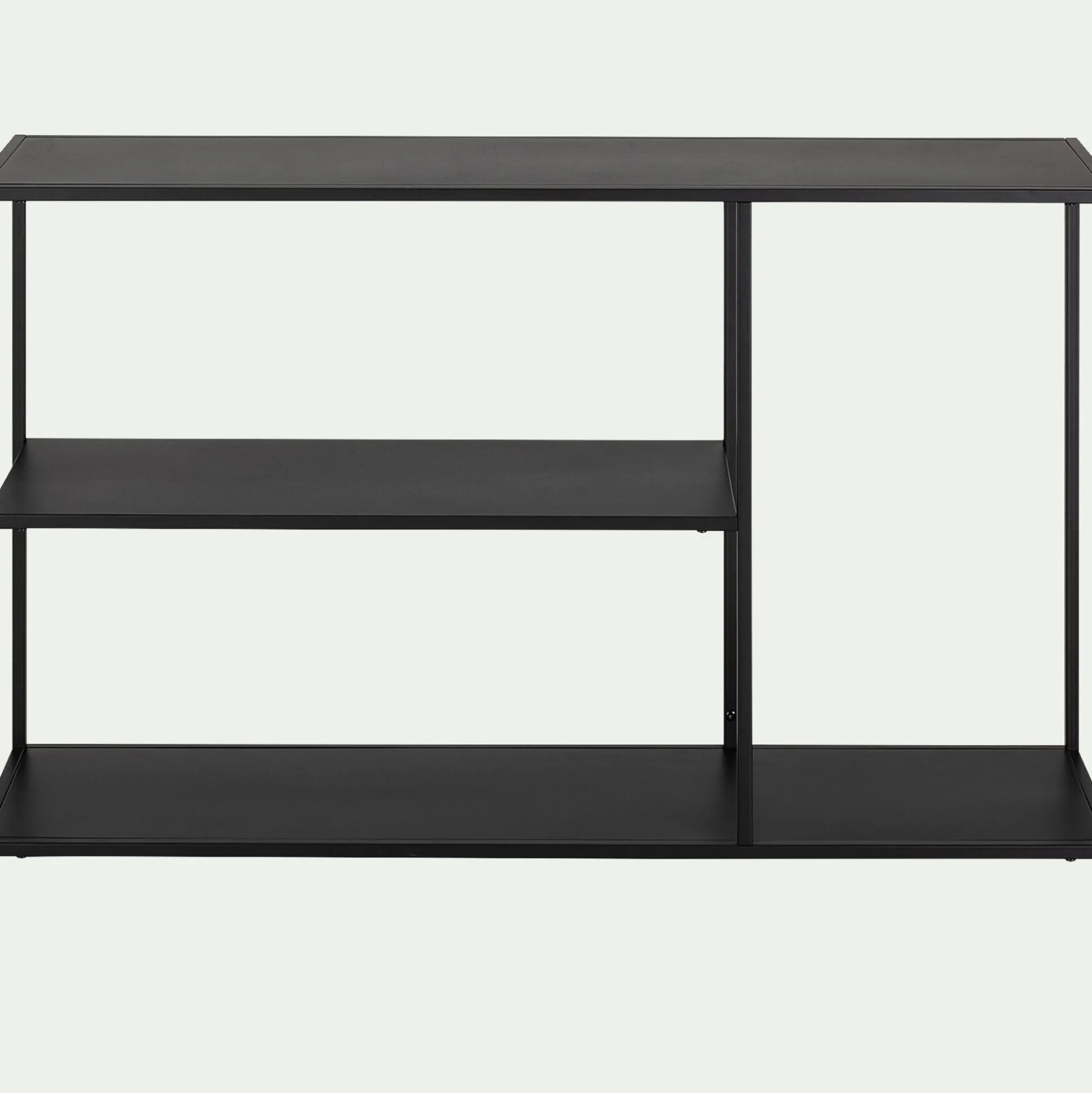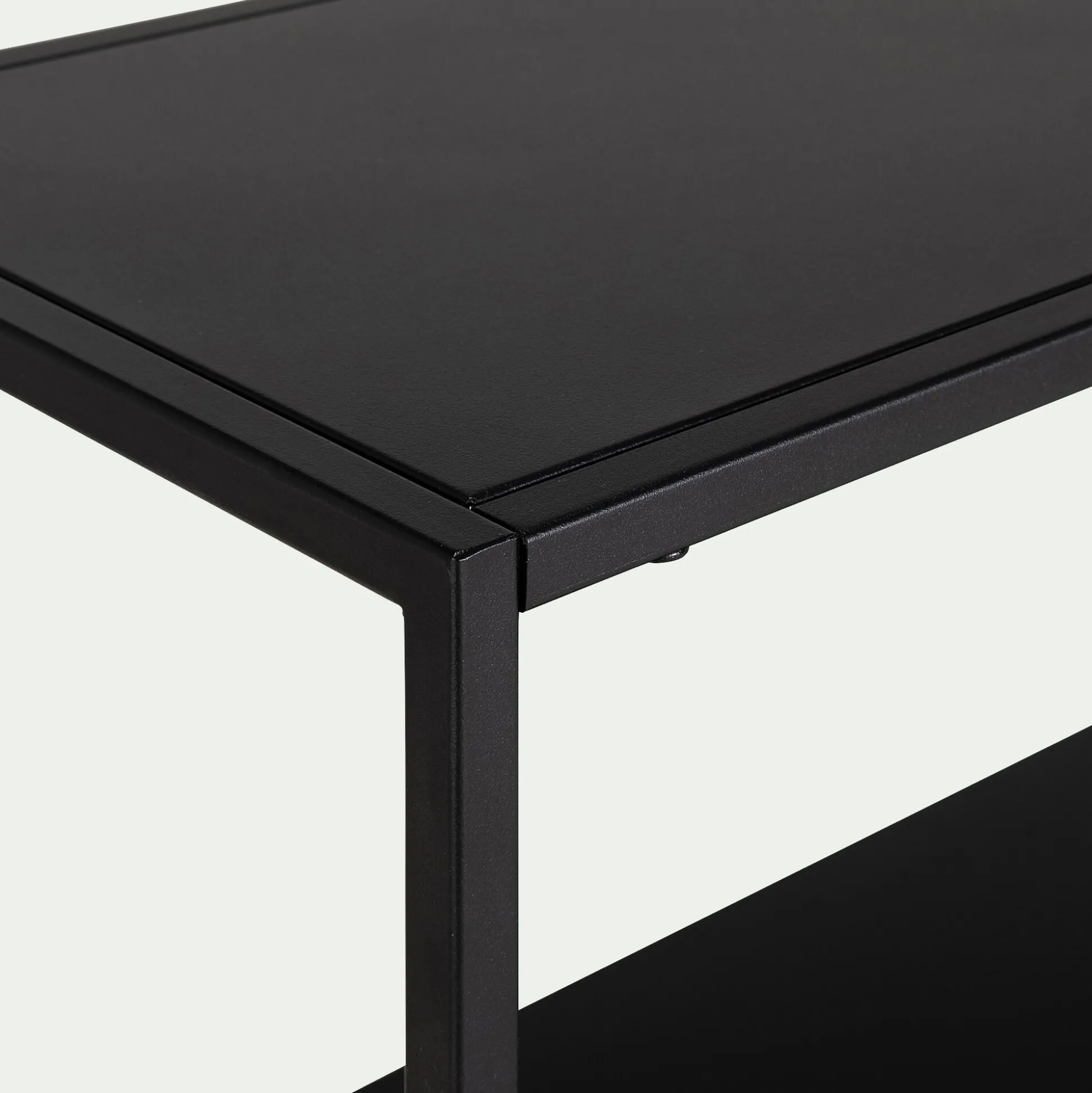Cette console en acier noir habille votre entrée et permet de l’organiser afin d’optimiser l’espace. Longue mais étroite, elle se place contre le mur et laisse le passage libre. Cette console d’entrée présente trois plateaux différents. La tablette supérieure peut accueillir un vase, une plante, une bougie ou encore un objet déco, afin d’apporter du charme à la pièce. Le second plateau et le plateau inférieur, plus discrets, peuvent servir d’espace de rangement supplémentaire. Enfin, le plateau inférieur est assez grand pour y ranger des paniers ou bien des chaussures. Cette console aux lignes épurées et au design contemporain s’intègrera aisément à la déco de votre intérieur.