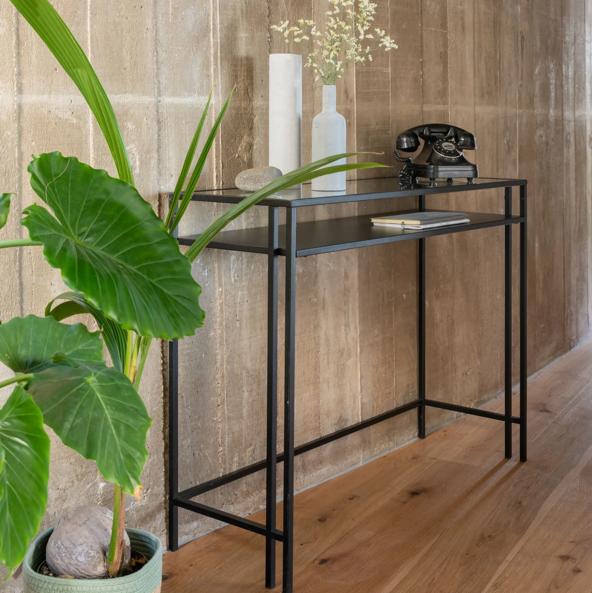 Console en verre et acier – noir L100xP35xH78cm