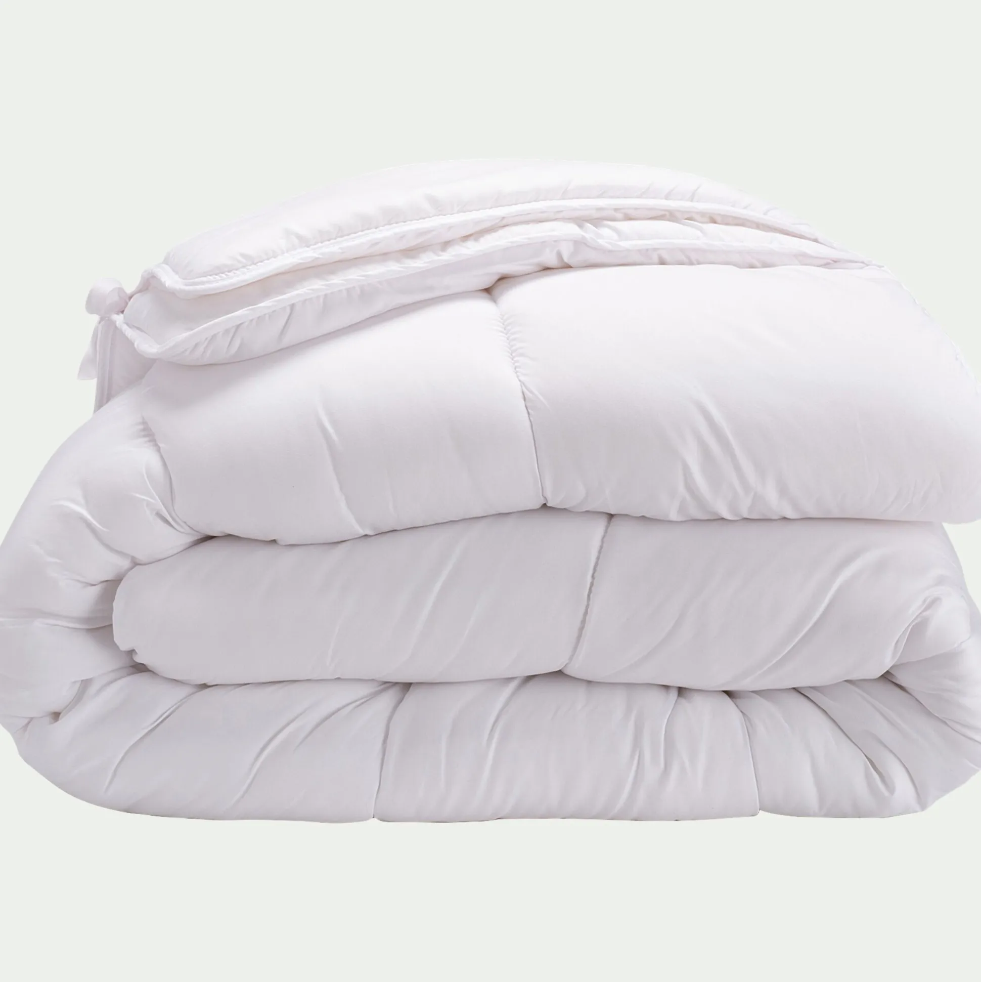 La couette louisa 140×200 cm est pensée pour vous accompagner toute l’année. Elle se compose de deux couettes légères et tempérées qui se nouent ensemble pour former une couette chaude et enveloppante durant l’hiver. Son garnissage en fibre creuse siliconée recyclée offre un gonflant moelleux et un confort optimal. L’enveloppe 100% microfibre assure une douceur incomparable sur la peau. Facile d’entretien, elle est le choix idéal pour un sommeil réparateur, quelle que soit la saison. Associez-la à nos draps doux pour créer un véritable cocon de bien-être.