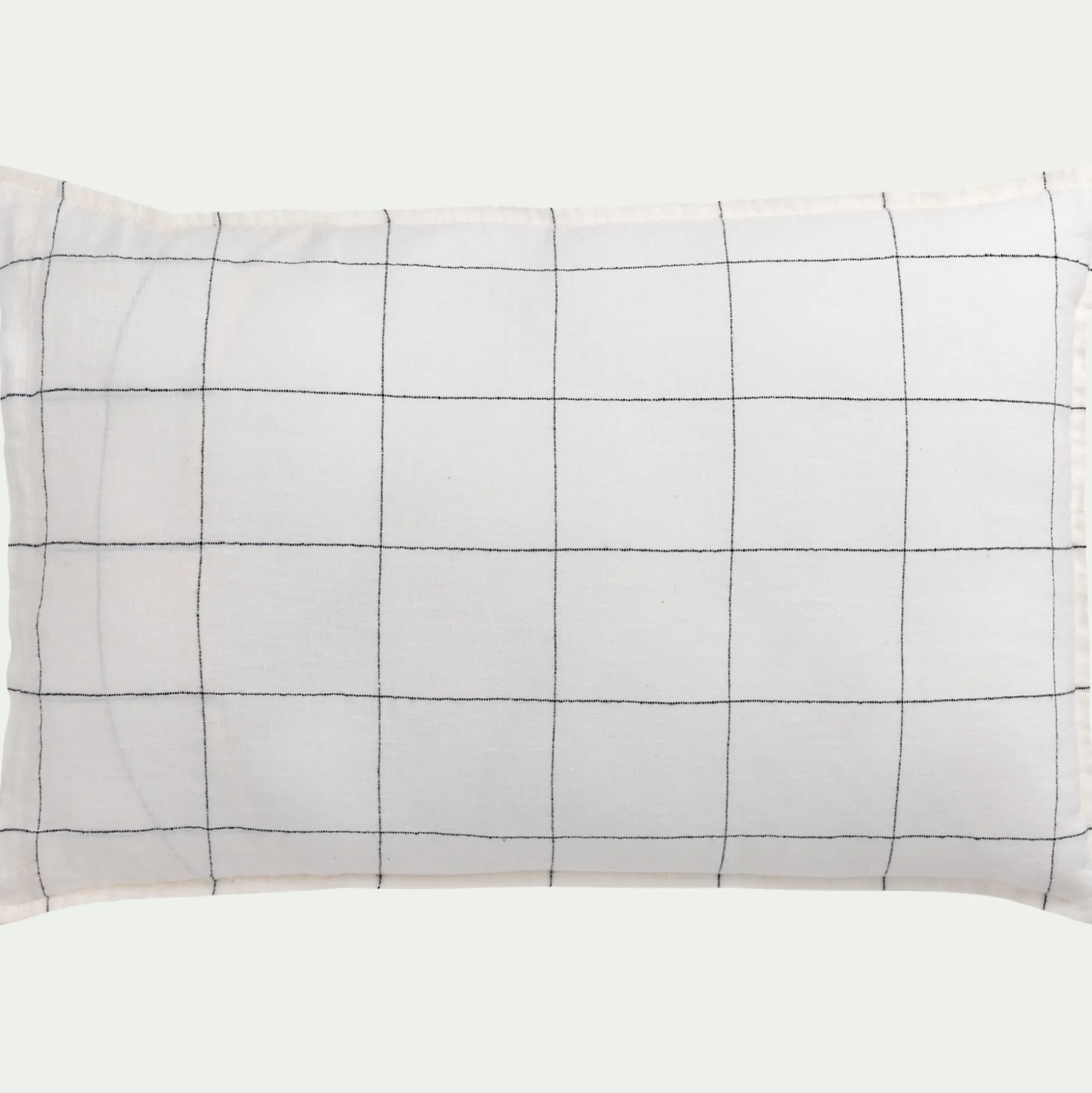 Simple et élégant, le coussin Tetra apporte une touche rafraîchissante à votre décoration. Dans des tons neutres et intemporels, il mélange le blanc et le noir pour un résultat harmonieux. En effet, sa housse en lin arbore un motif à carreaux, tout en finesse. Les lignes noires se découpent sur la toile blanche et offrent un contraste équilibré. Ce coussin de 40×60 cm est une note contemporaine, parfaite pour sublimer le salon.