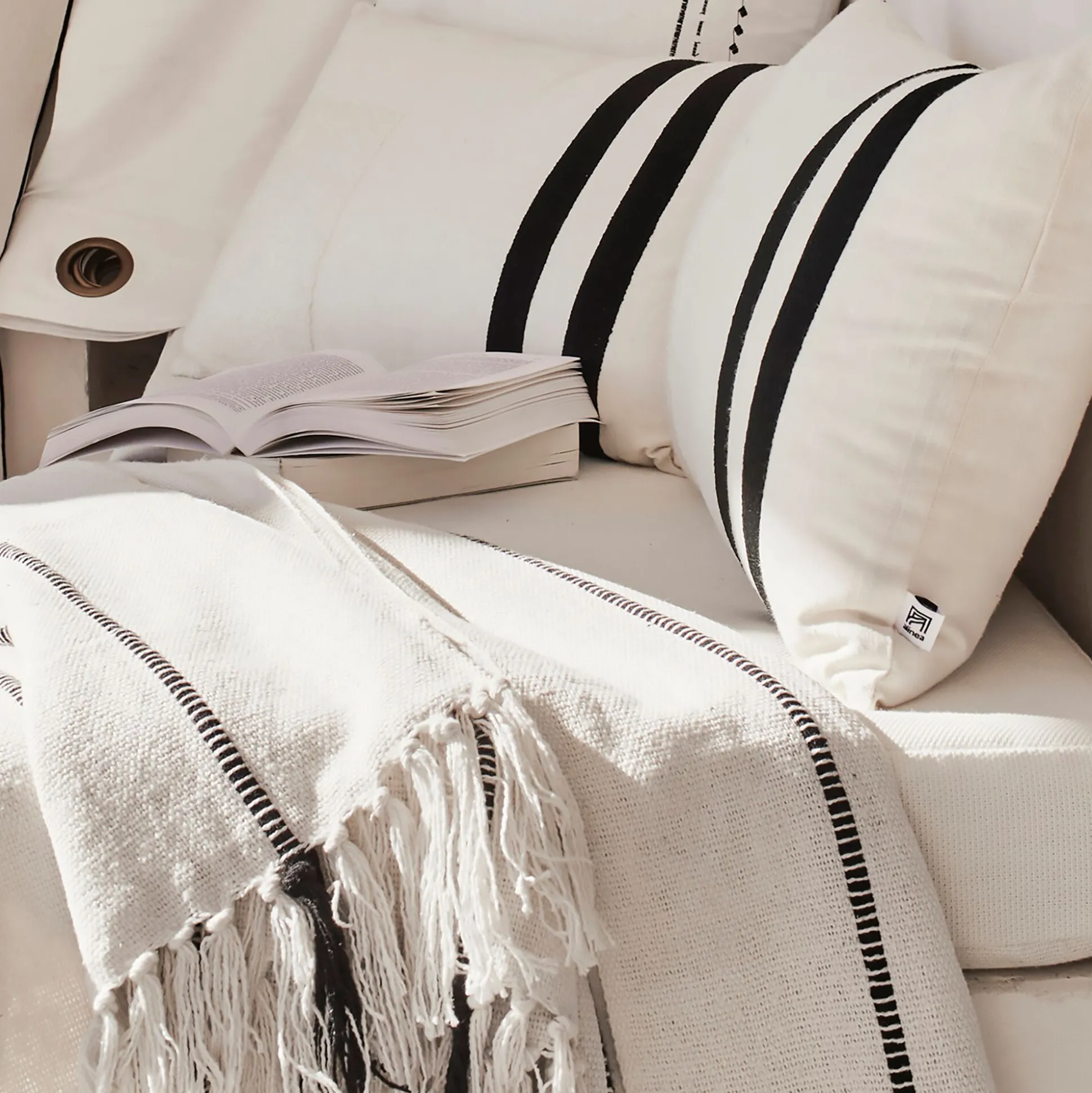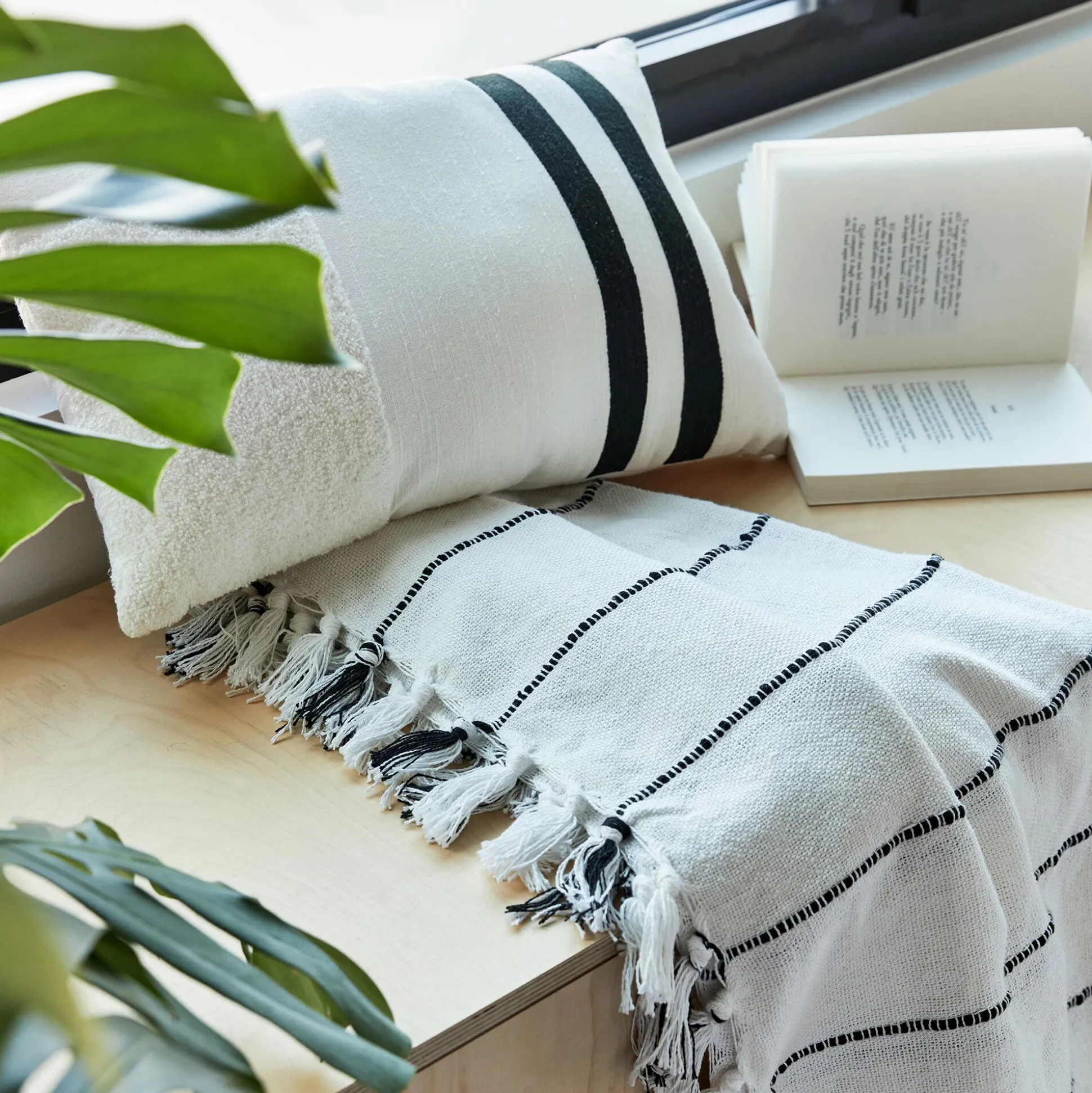 Coussin noir et blanc à rayures