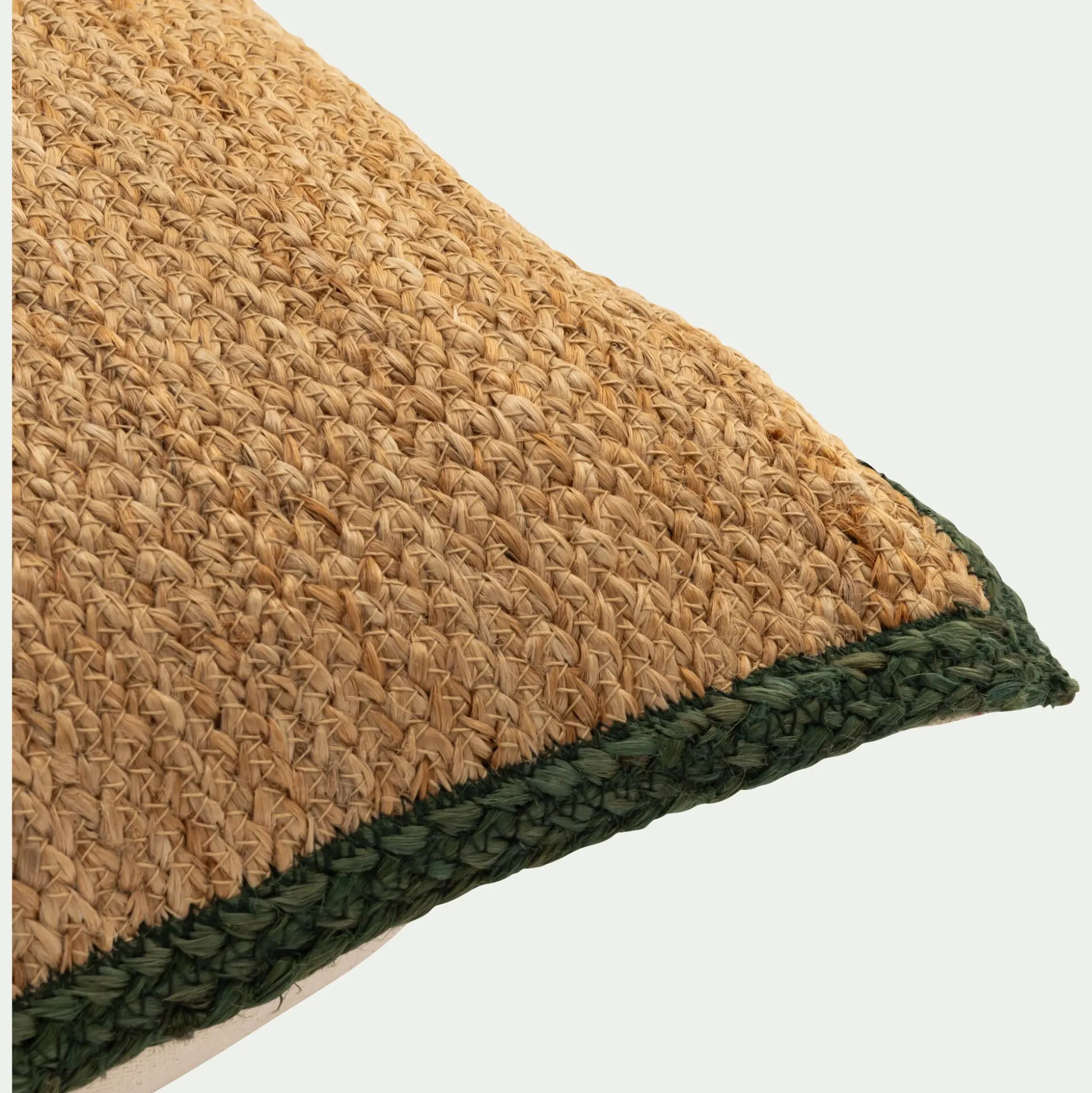 Une douce déco champêtre se dégage de votre intérieur grâce à ce coussin tressé. En coton et en jute, son enveloppe arbore un coloris naturel. Sa finition liserée verte donne un rendu élégant. En 45×45 cm, ce coussin décore votre canapé pour une décoration bohème. Déhoussable, il est tressé en jute d’un côté et en tissu en coton de l’autre.