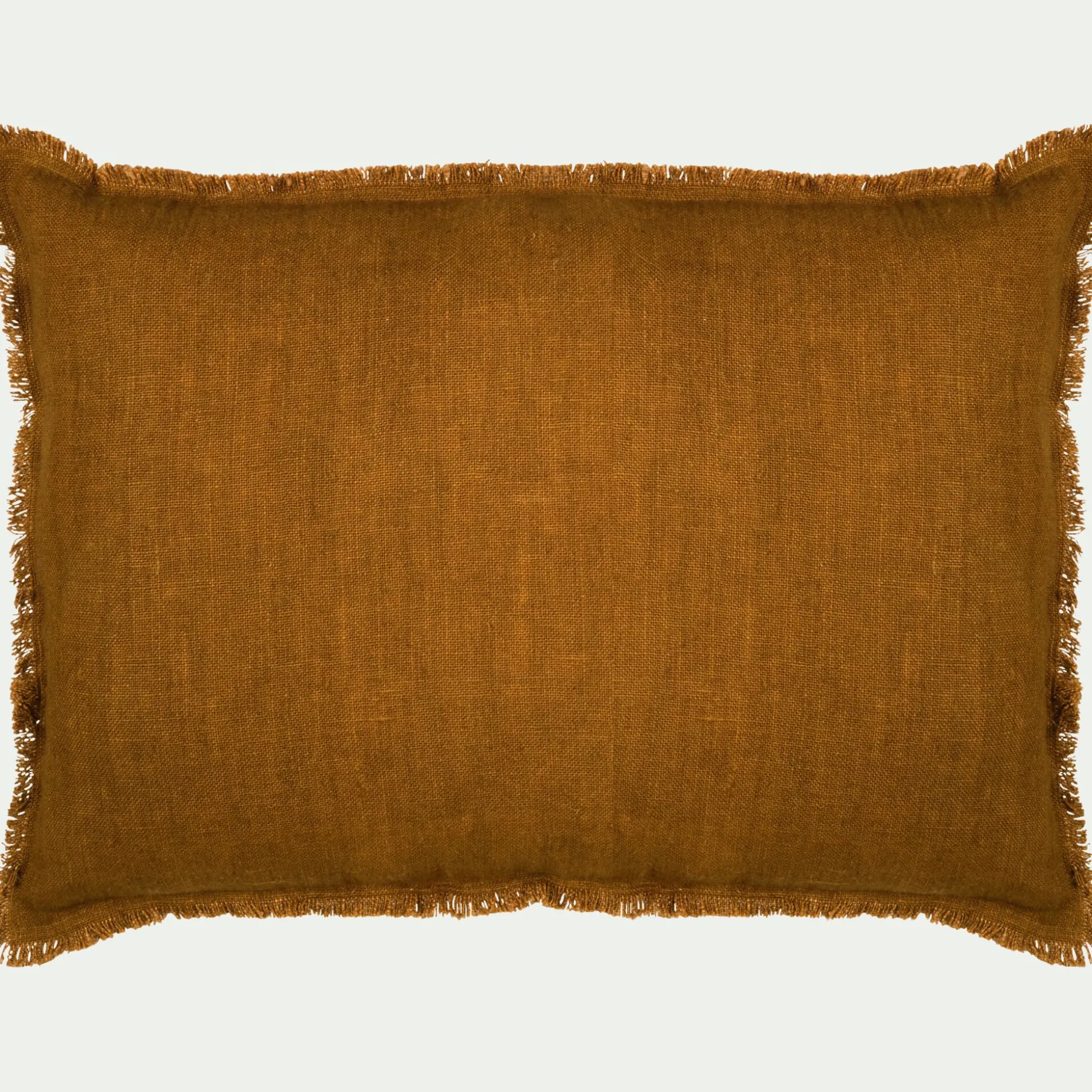 Les Egyptiens désignaient le lin sous le nom de « lumière de lune tissée », une appelation évocatrice d’une beauté singulière. Utilisé depuis plus de 30 000 ans, ses fibres naturelles ont traversé les époques et les frontières en faisant l’unanimité. Symbole de pureté, le lin était utilisé pour vêtir les prêtres égyptiens ainsi que les momies. Léger et soyeux, il est aujourd’hui utilisé pour confectionner des produits à l’esprit bohème. Ce coussin rectangulaire de 50x70cm arbore une couleur naturelle, inspirée des paysages égyptiens. Sa teinte brun alep évoque les étendues sablonneuses de la Méditerranée orientale. De courtes franges soulignent ses courbes et la matière.