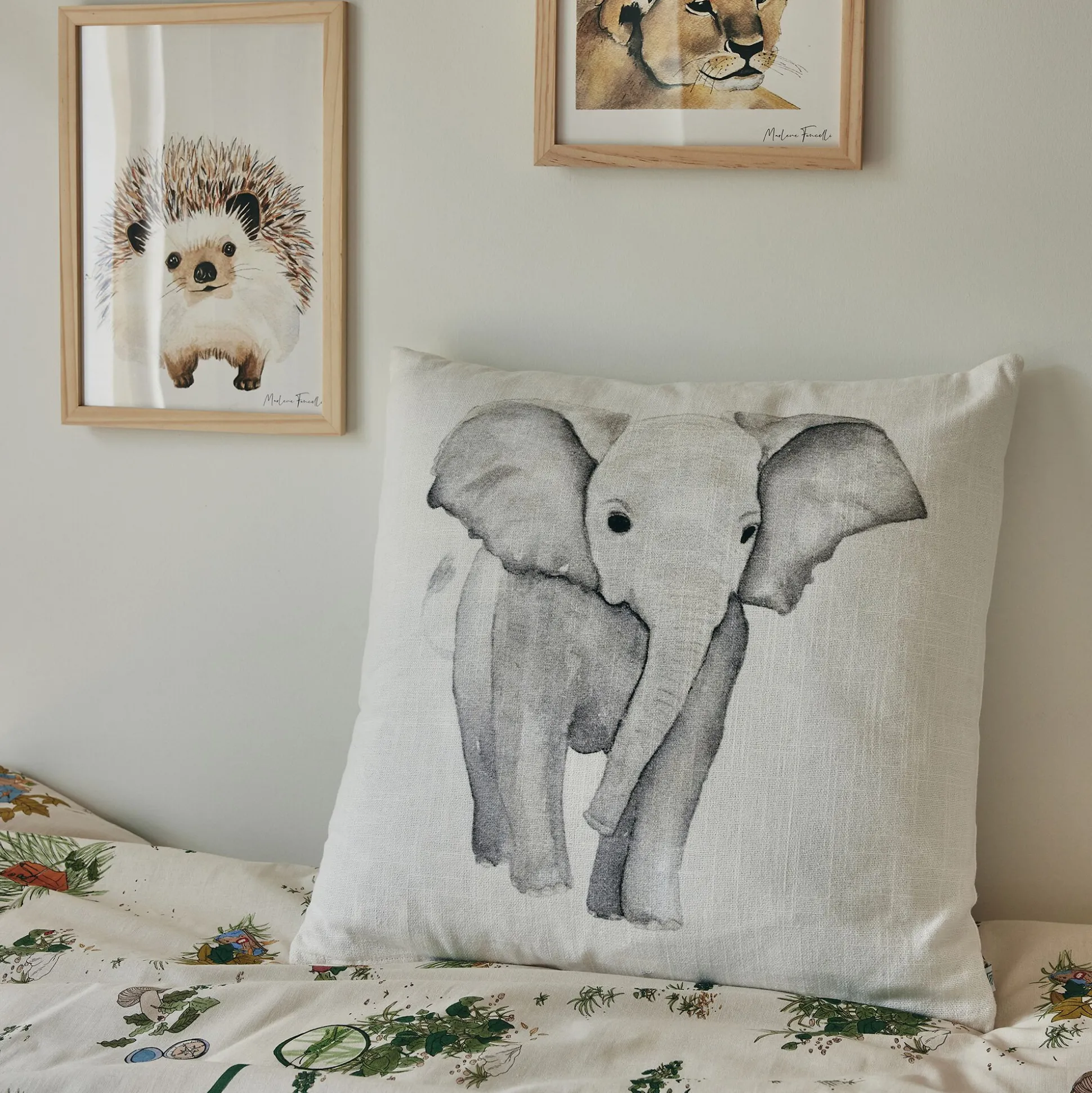 Coussin motif éléphant en coton 45x45cm – gris