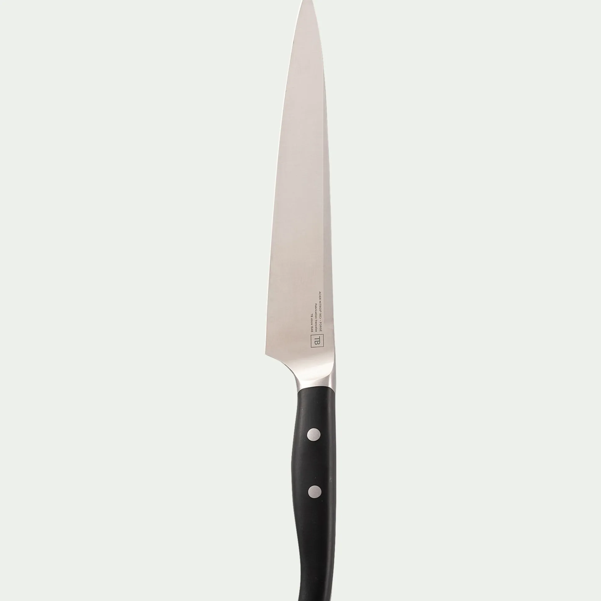 Avec ce couteau de cuisine, devenez un véritable chef à la maison et épater vos proches avec la précision de votre découpe. Doté d’une lame de 20 cm, ce couteau multi-usage qui vous permettra de découper différents aliments afin de réaliser toutes vos recettes. Sa lame en acier Nitrox contient du chrome et du carbone afin de renforcer sa dureté et ses propriétés anti-corrosion pour éviter qu’il ne s’abîme au fur et à mesure des utilisations. Son manche, solide et léger à la fois, est en thermo-plastique, une matière hygiénique et très résistante aux chocs et aux changements de température.