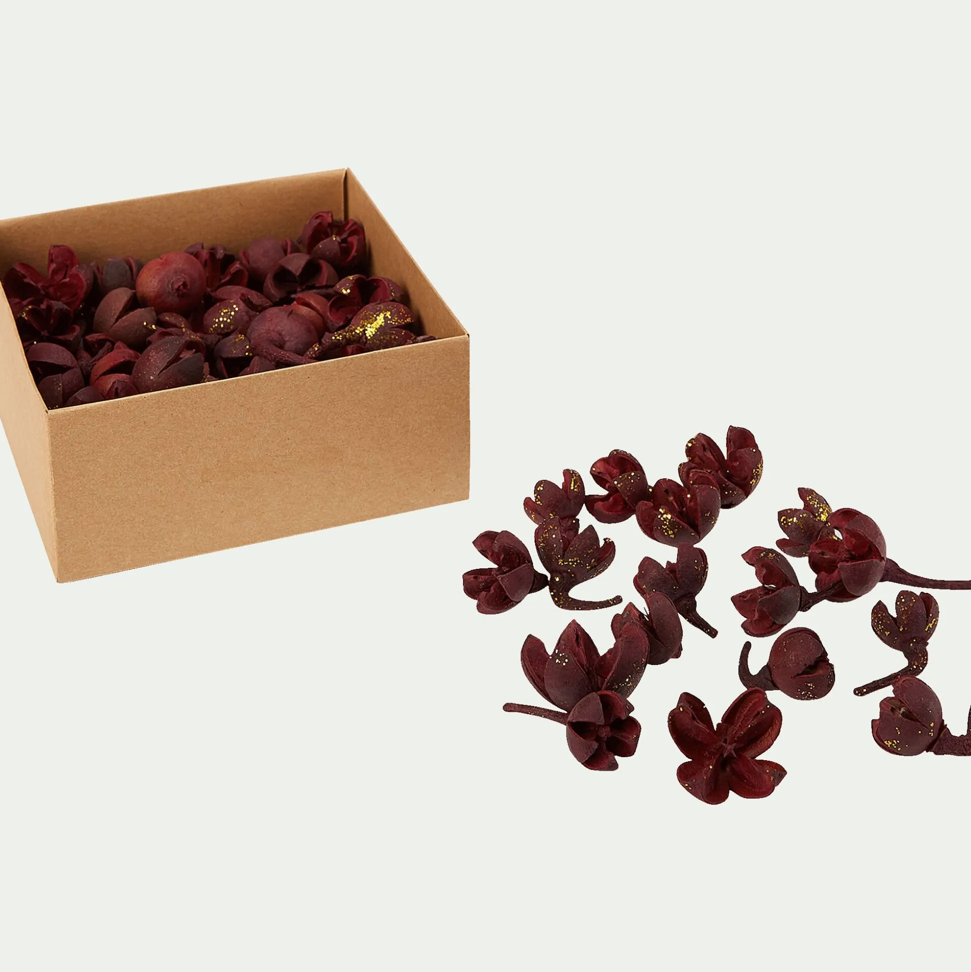 Embellissez votre table et vos meubles de ces fruits secs décoratifs. Une touche sucrée et festive pour des fêtes de fin d’années délicieuses et conviviales. Des fruits aux couleurs de Noël rouge et or pour une déco traditionnelle et originale à la fois.