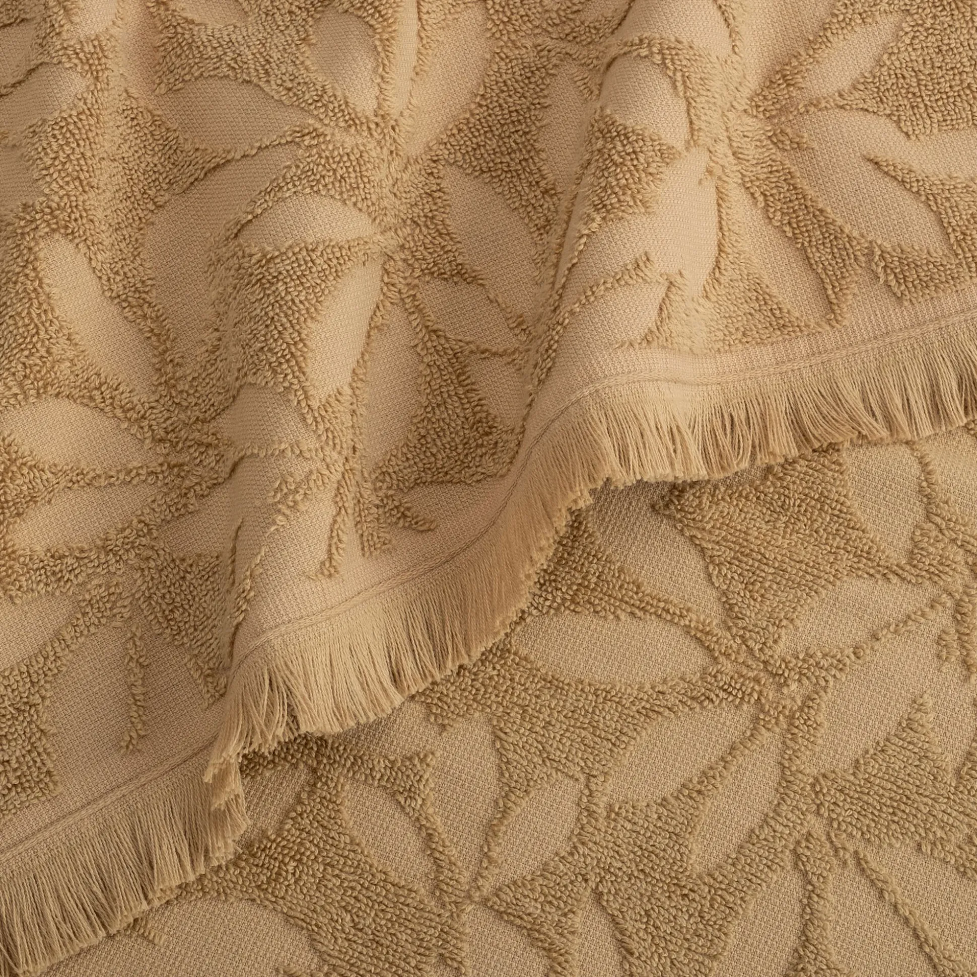 Le drap de douche Alloro allie confort et raffinement avec son tissage en coton de 500 g/m². Doux et absorbant, il enveloppe la peau dans une agréable sensation de bien-être. Son motif floral en jacquard apporte une touche décorative délicate, soulignée par une finition frangée qui accentue son charme. De 70×140 cm, cette serviette de toilette est idéale au quotidien. Certifié Oeko-Tex et fabriqué au Portugal, ce drap de douche dans notre coloris beige sable conjugue élégance naturelle et qualité durable.