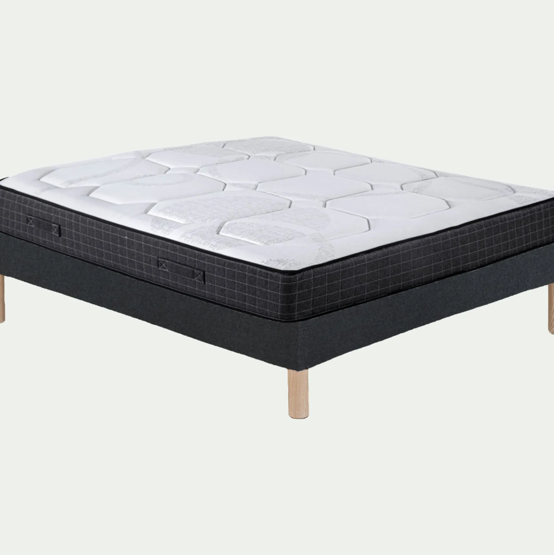 Transformez vos nuits en un instant grâce à ce lit composé d’un matelas au confort enveloppant et d’un sommier équilibré. Ce matelas offre 660 ressorts ensachés répartis sur 5 zones de soutien distinctes. Ce matelas à ressorts propose donc une sensation d’accueil chaleureuse et un soutien équilibré. Outre son confort, ce matelas est également respectueux de l’environnement. Conçu en France et agréé Oeko-tex, c’est un indispensable pour passer des nuits régénératrices. Il s’accorde parfaitement avec ce magnifique sommier tapissier en sapin massif, dans un style urbain et contemporain, offrant une flexibilité agréable grâce à ses lattes dynamiques.