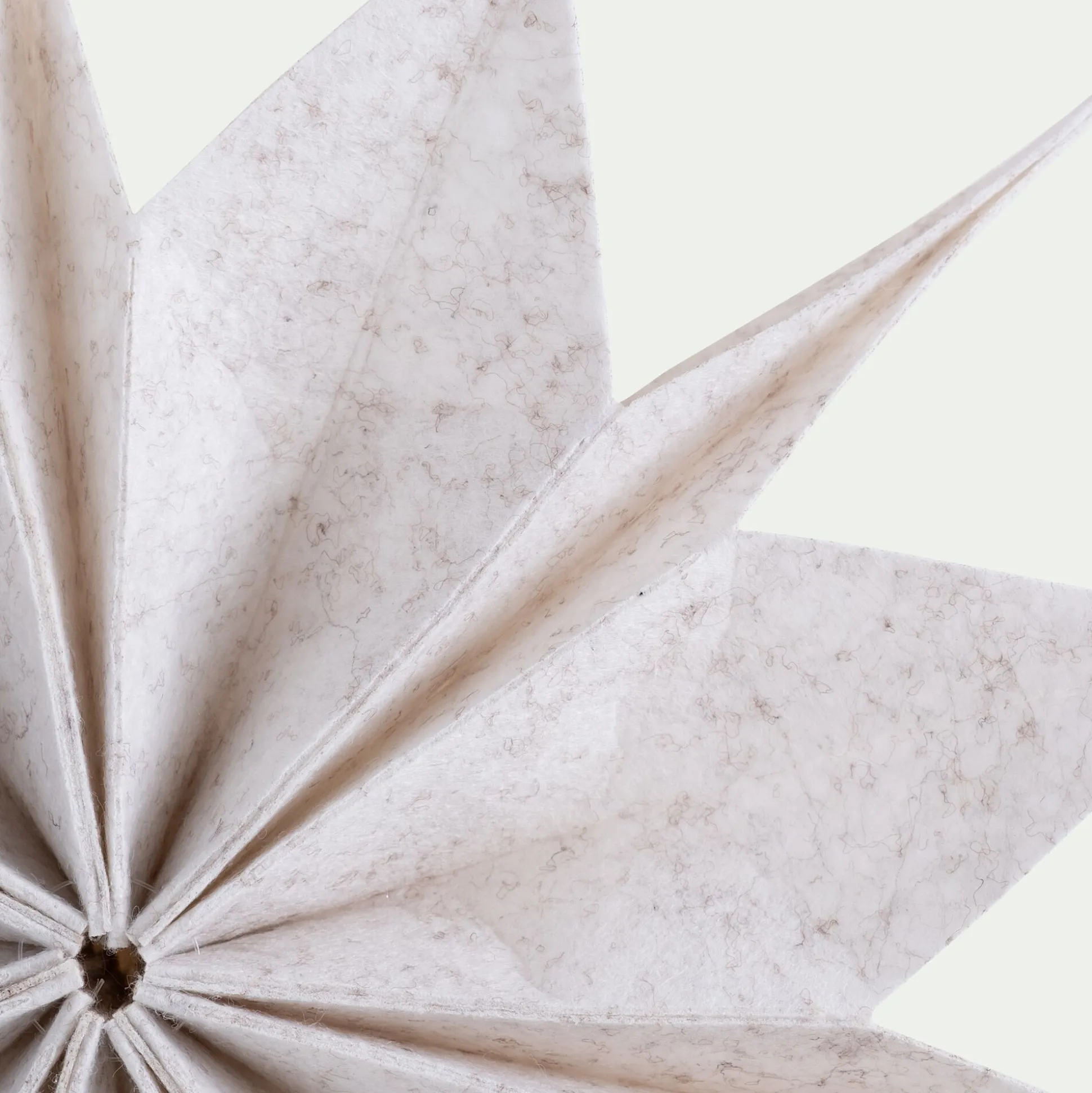 De 40cm de diamètre, cette étoile blanche en feutrine séduit par son allure délicate et graphique. Inspirée de l’art de l’origami, elle déploie avec élégance ses multiples branches, dans un coloris blanc qui rappelle la magie silencieuse de l’hiver. À suspendre dans le sapin, devant une fenêtre ou sur un mur, elle insuffle une touche aérienne et poétique à la décoration de Noël. Une pièce forte, à la fois simple et envoûtante, pour célébrer les fêtes avec douceur.
