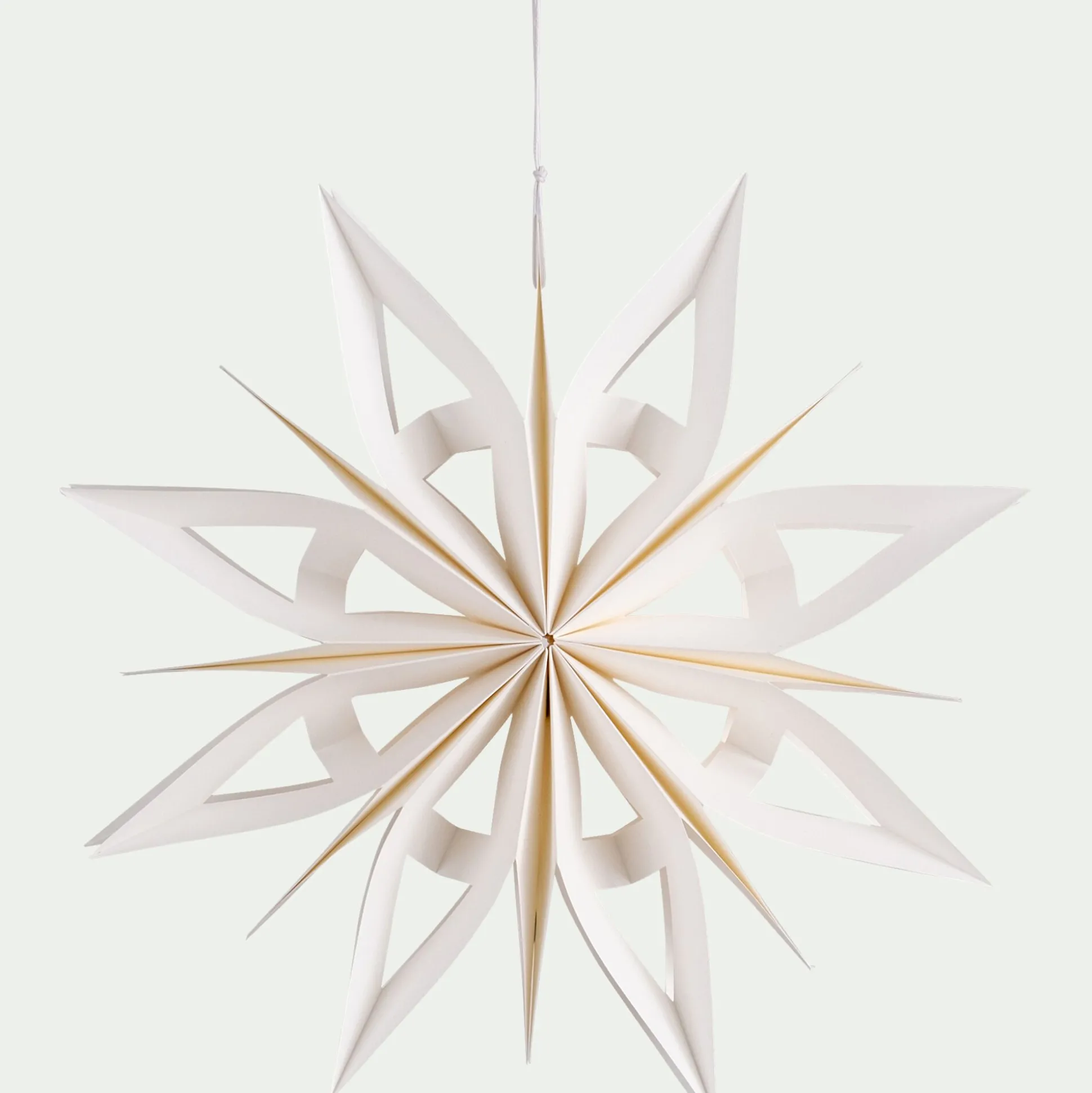 En papier ajouré, cette décoration à suspendre en forme d’étoile apportera une touche de poésie et d’élégance à votre intérieur. Sa matière légère et ses lignes délicates créeront un jeu de lumières et d’ombres qui sublimeront la pièce. Idéale pour les fêtes de fin d’année, elle peut être suspendue à une branche de sapin ou au plafond pour créer une atmosphère féerique. Son design sobre et raffiné en fait un élément de décoration intemporel, qui s’accordera parfaitement à un style minimaliste, bohème ou plus classique.