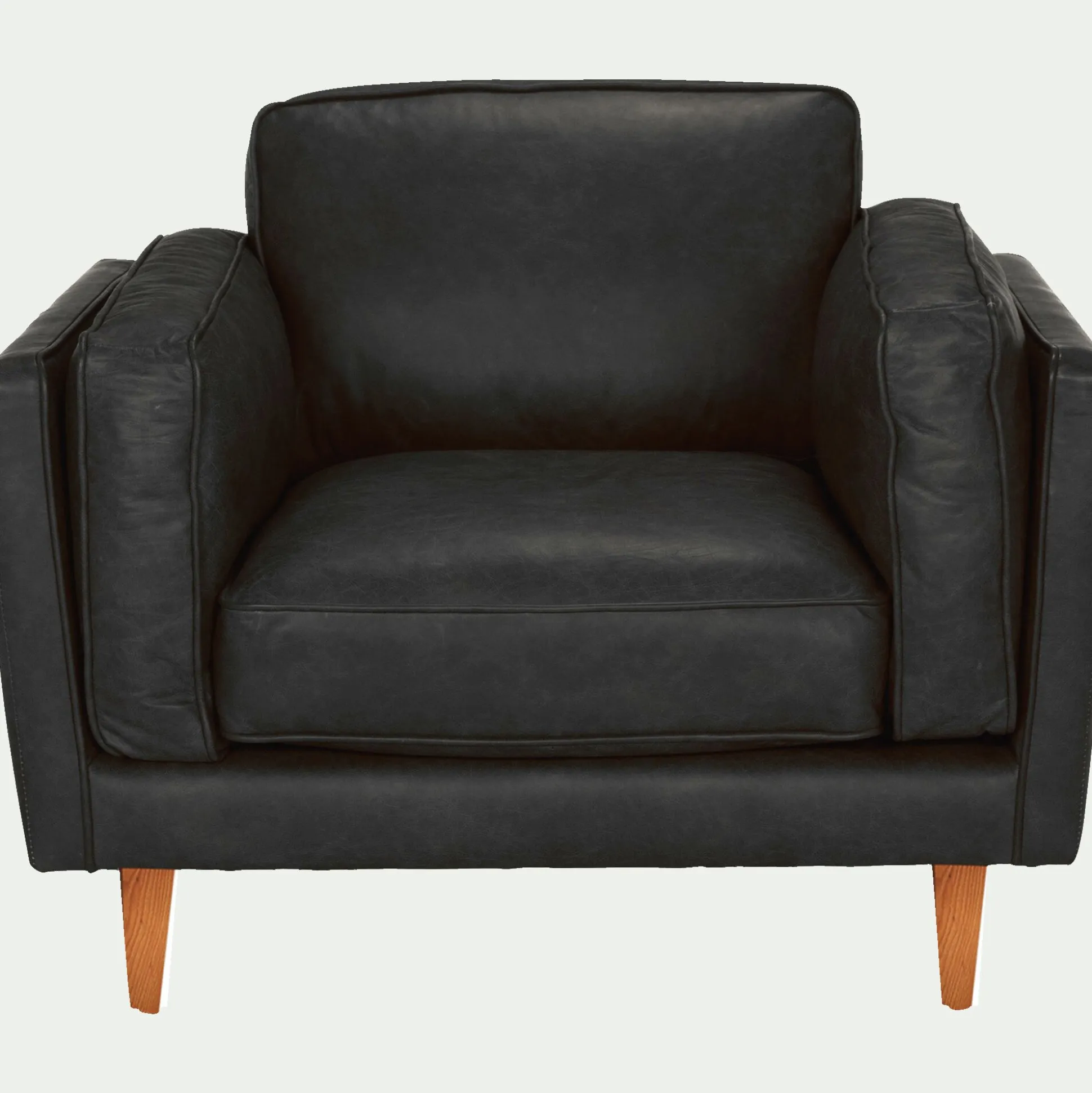 Laissez-vous envelopper par ce superbe fauteuil en cuir de vachette à l’allure enveloppante et au style rétro fièrement affirmé. Il apportera une touche vintage à votre intérieur et vous offrira un grand confort d’assise avec son dossier et son assise garnis de plumes. Pour un duo plein de charme, associez-le avec le canapé 2 ou 3 places de la même gamme.