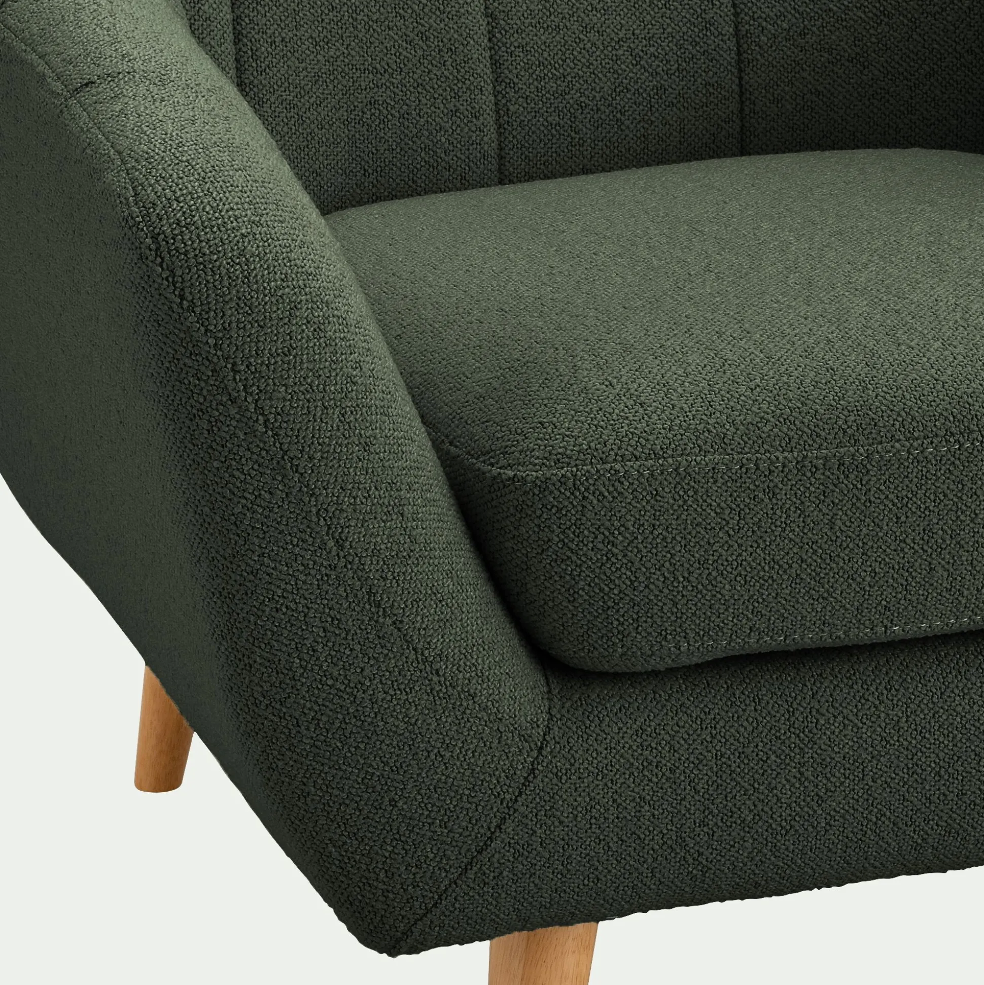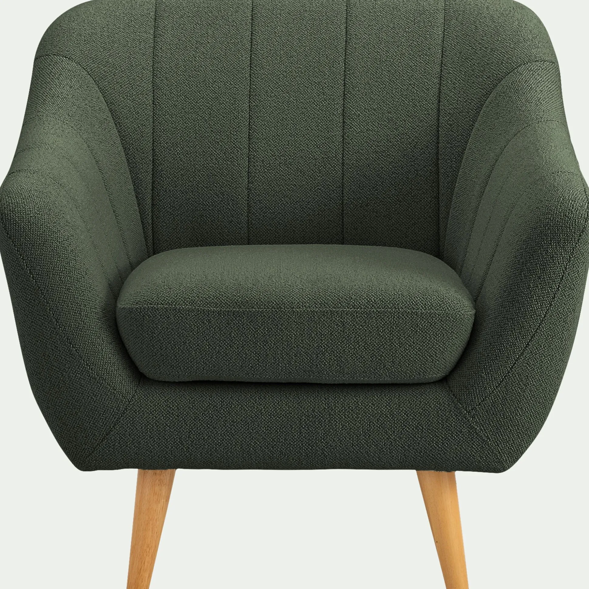 Créez une ambiance élégante avec ce fauteuil vert. Avec son assise moelleuse et son dossier matelassé, il offre un excellent confort d’assise. Son coloris vert adoucit votre décoration d’intérieur et apporte une note lumineuse à l’ensemble. Ce fauteuil en tissu bouclette est souligné par un piètement en hévéa, une essence de bois claire qui couronne le tout d’une touche chaleureuse. Résolument rétro, le design de ce fauteuil s’inspire d’une coquille Saint-Jacques. Découvrez le reste de la gamme Shell qui se compose de canapés, de poufs et de chaises pour vous offrir un bel ensemble qui saura mettre en valeur votre pièce de vie.