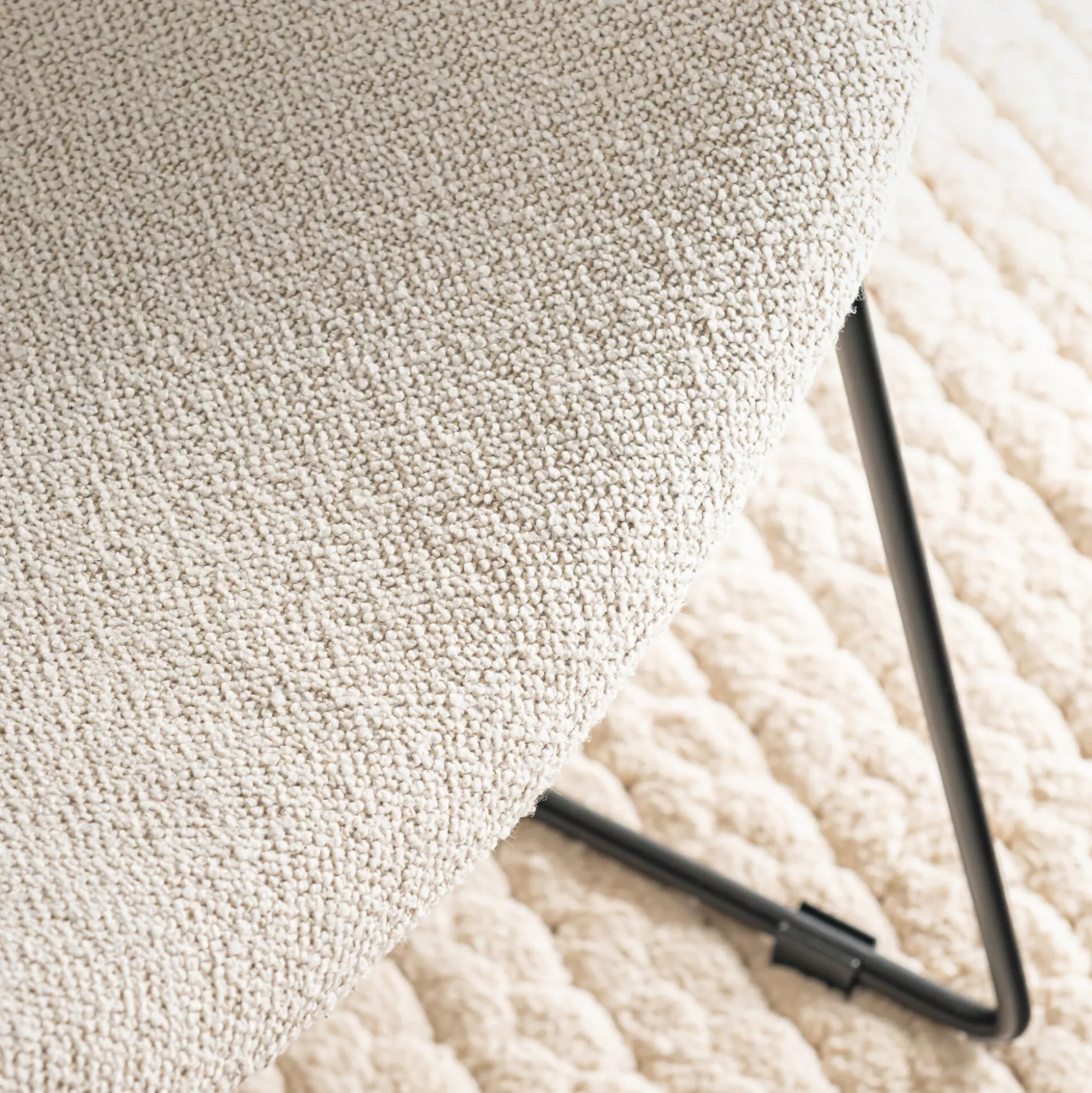 Ce fauteuil vintage aux formes arrondies alliant métal et tissu bouclette s’adapte avec brio à votre intérieur. Il s’intégrera à la perfection dans un salon jouant sur le mix des styles et des matières donnant un côté sophistiqué à votre décoration. Ce fauteuil beige arbore un piétement en acier noir soutenant une assise en un seul bloc afin de vous offrir un confort enveloppant. Design et rétro, ce superbe fauteuil donnera toute son allure à votre pièce de vie.