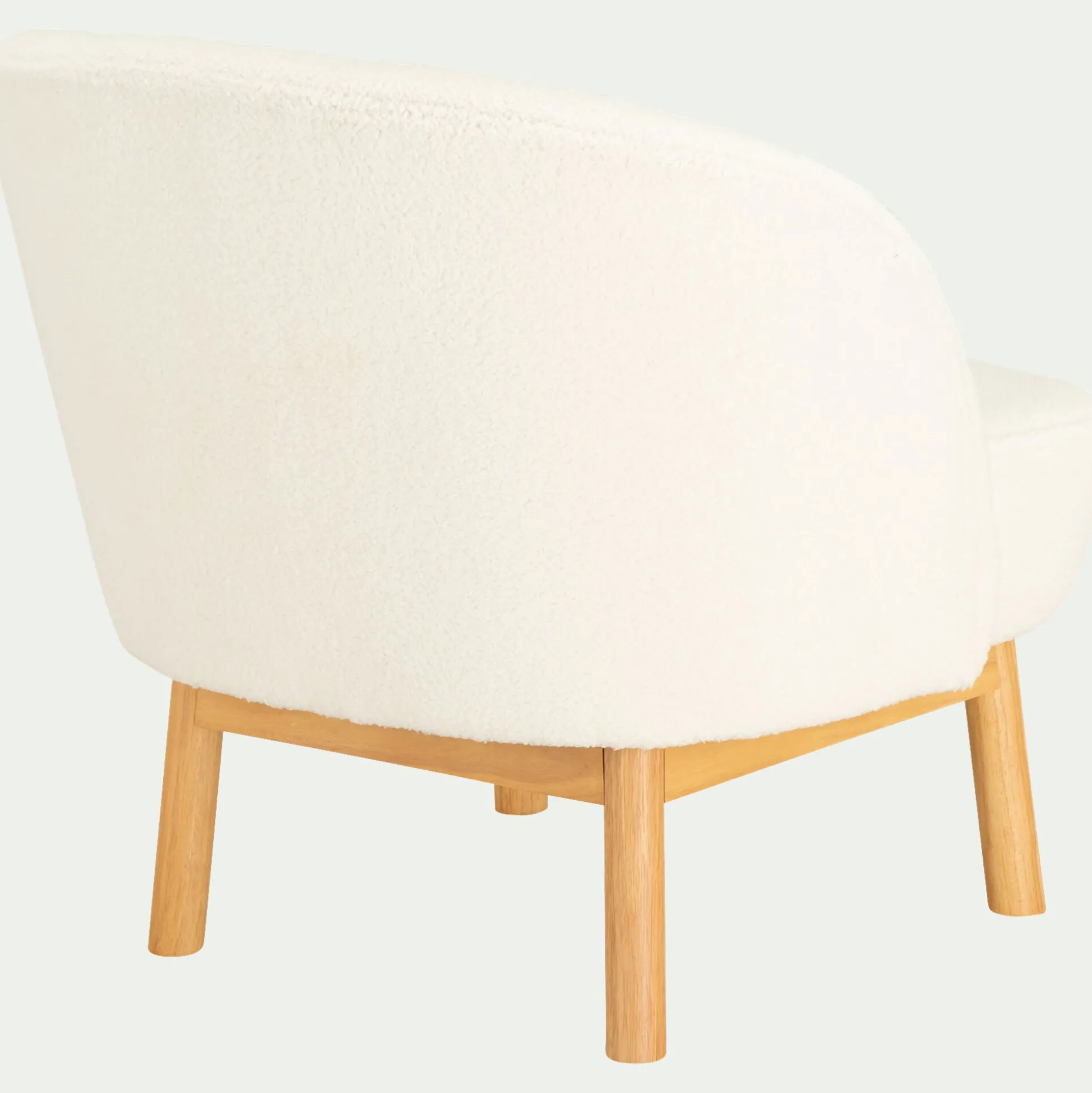 Découvrez Vallon, un fauteuil au look tendance qui offre un grand confort d’assise tout en ajoutant une touche de déco en plus à votre séjour. Son revêtement en tissu avec un effet moutonné blanc capelan est subtilement contrasté par un piétement en bois d’hévéa naturel qui donne toute son originalité à ce siège. Installez-vous confortablement dans votre salon pour un moment de détente grâce à son large dossier enveloppant qui épouse parfaitement la courbe du dos. Il bénéficie également d’une assise large pour vous permettre d’adopter la meilleure position.