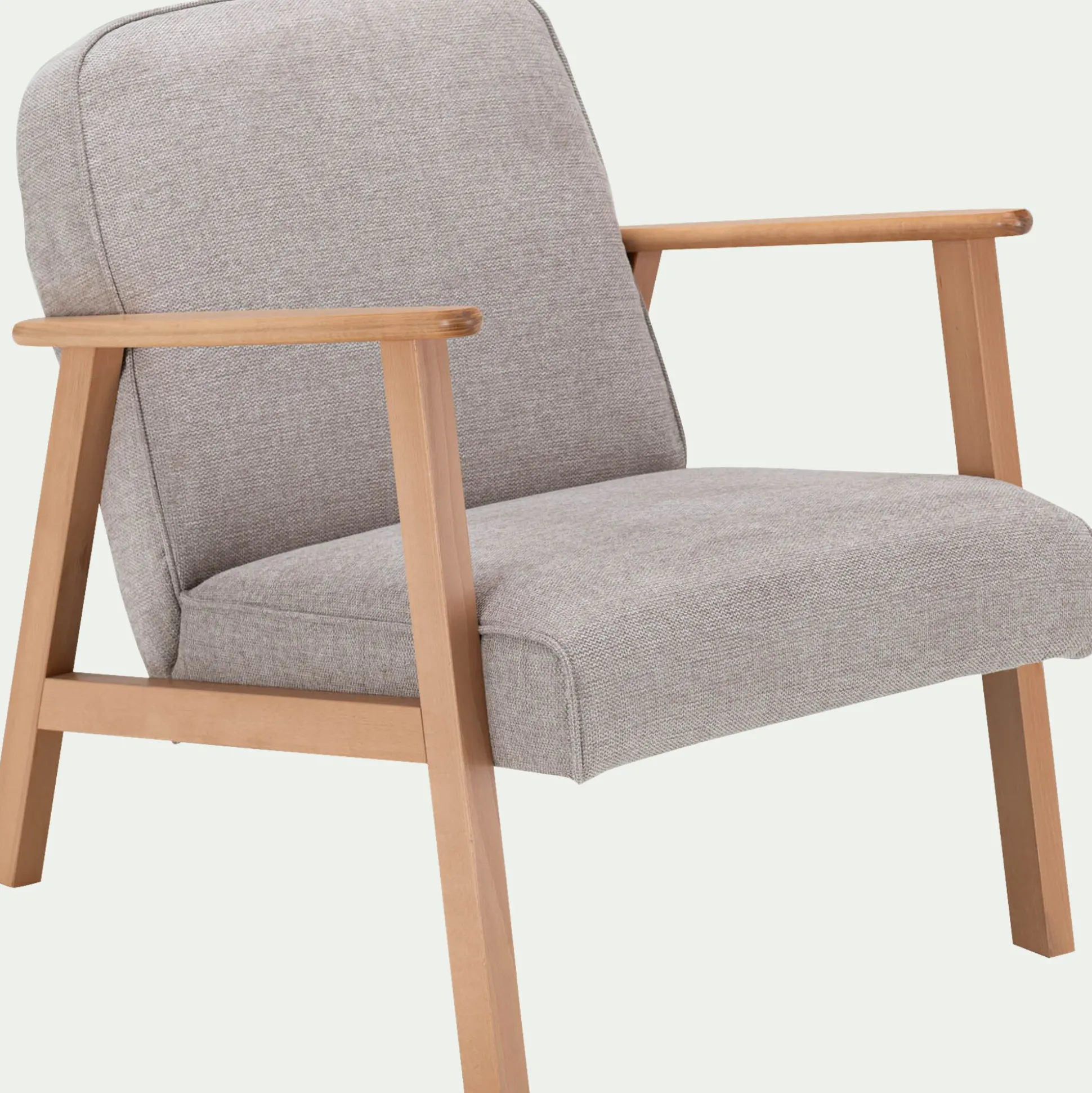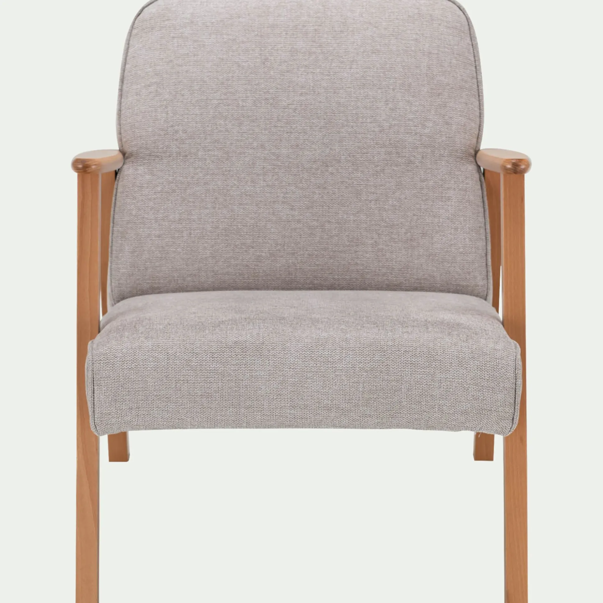Avec son tissu beige roucas, doux et naturel, ce fauteuil invite à la détente. Son assise généreuse et son dossier rembourré offrent un confort idéal pour les moments de repos. Deux accoudoirs viennent compléter la silhouette enveloppante, tandis que le piètement en hêtre apporte une touche authentique et chaleureuse. Un fauteuil en tissu pensé pour le salon, entre style apaisant et bien-être au quotidien.