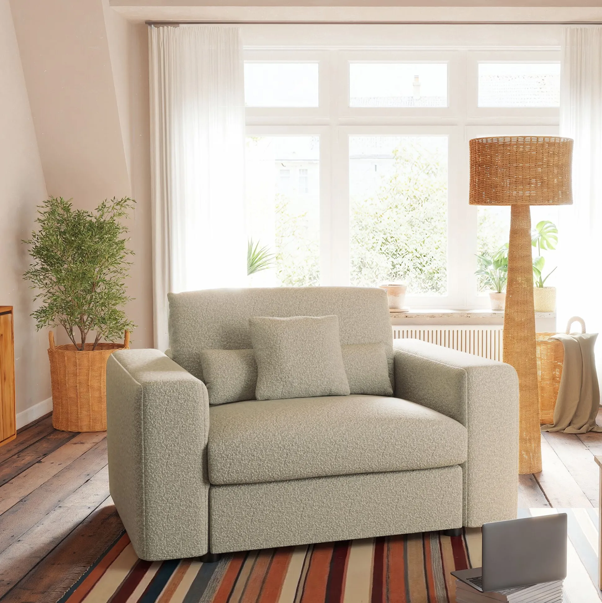 Fauteuil fixe en tissu bouclette – blanc écru