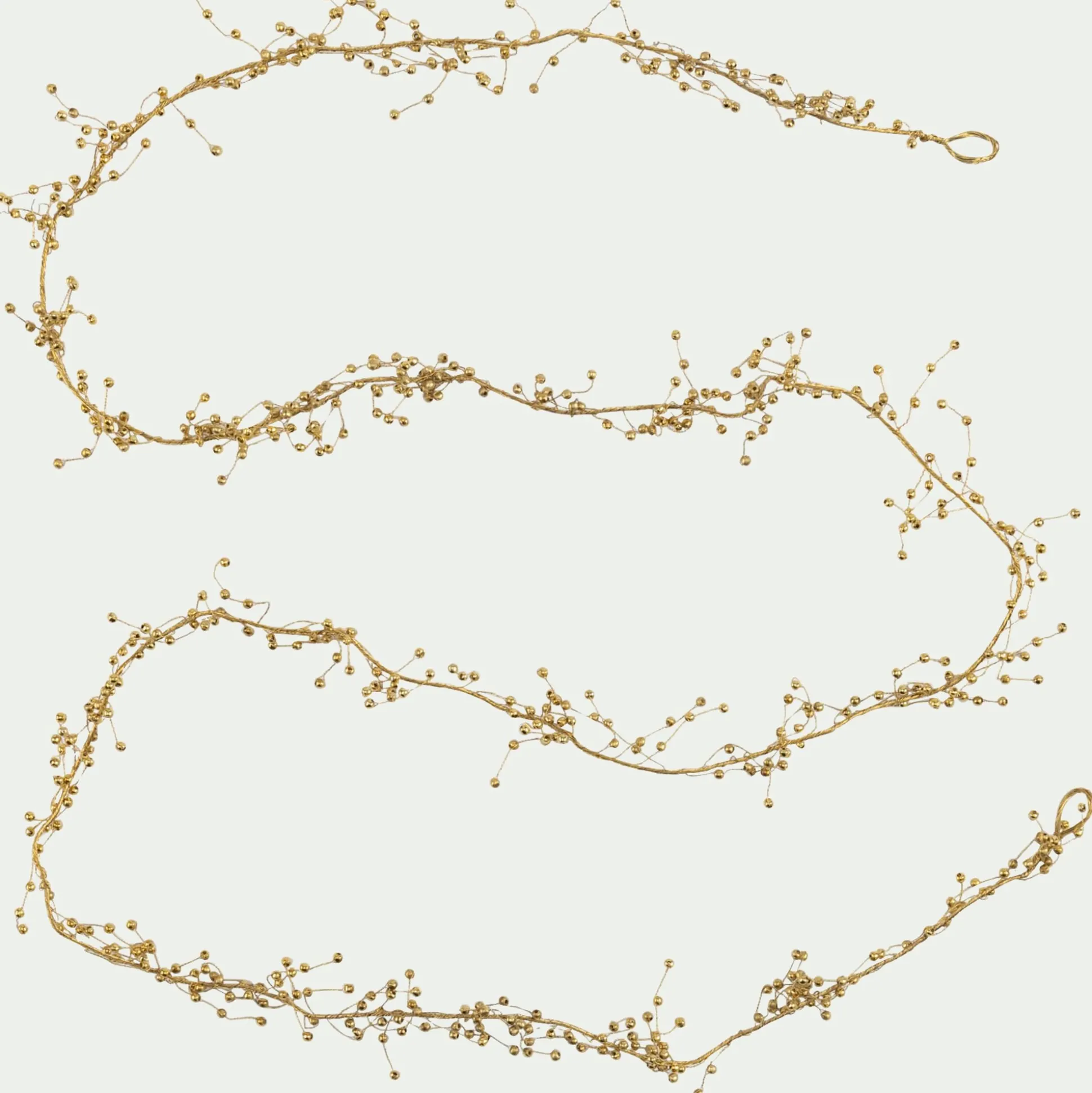 Cette belle guirlande de 183 cm de long est idéale pour décorer le sapin de Noël, ou encore un centre de table ou un escalier. En métal doré, elle est ornée d’une multitude de petites perles qui apportent du mouvement et de la vivacité. Cette décoration du sapin est parfaite pour revisiter les codes du Noël traditionnel.