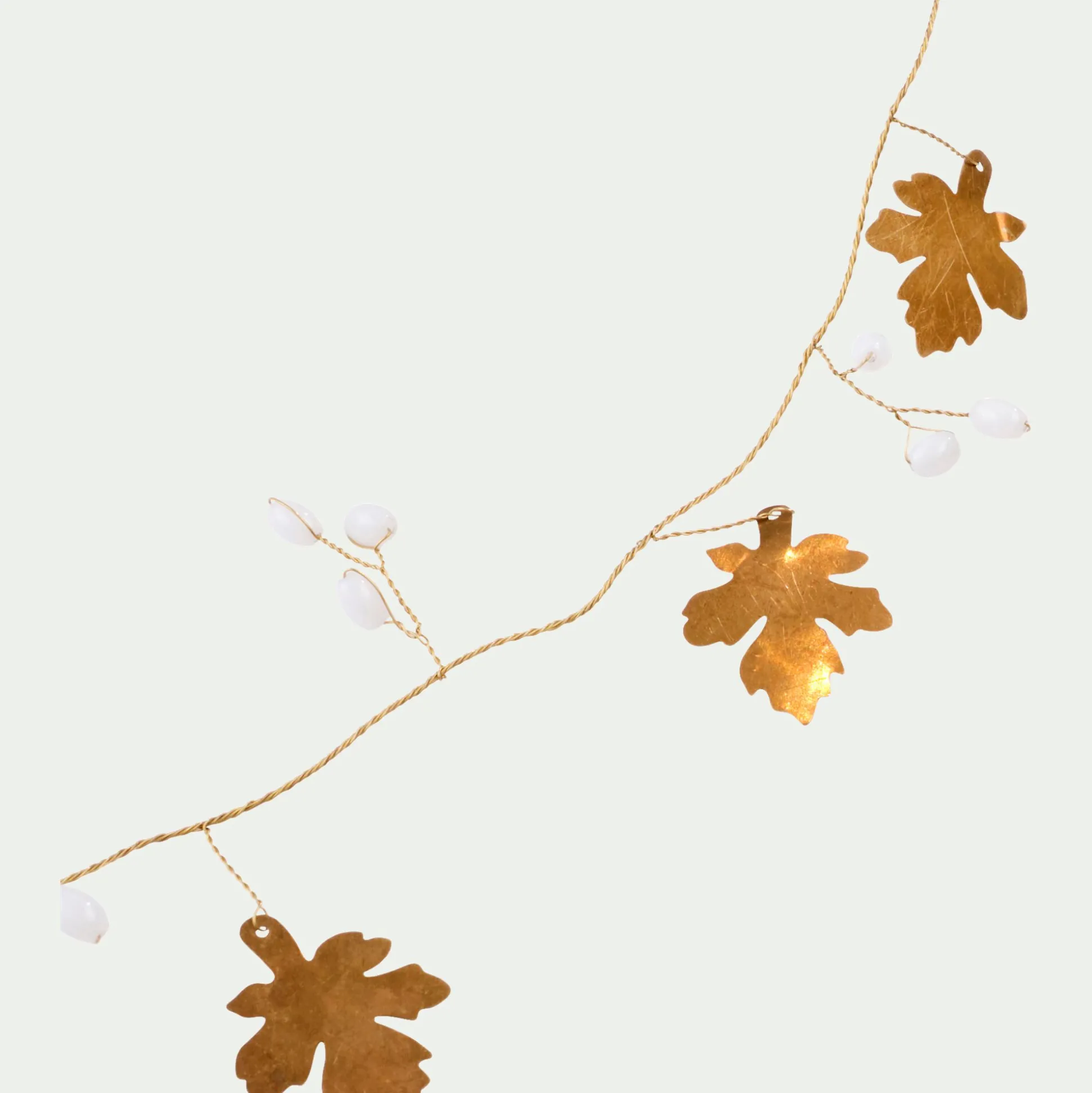 Pour les fêtes de fin d’année, décorez votre intérieur de cette guirlande sur laquelle s’épanouissent des feuilles en métal inspirées des érables majestueux. Dans des tons dorés et chauds, chaque feuille reflète la richesse des couleurs de l’automne. Les perles blanches apportent une touche d’éclat et d’élégance à cette grande guirlande de 183 cm. La guirlande de Noël Latrisse participe à une ambiance chaleureuse tout en apportant une finition sophistiquée à votre décoration.