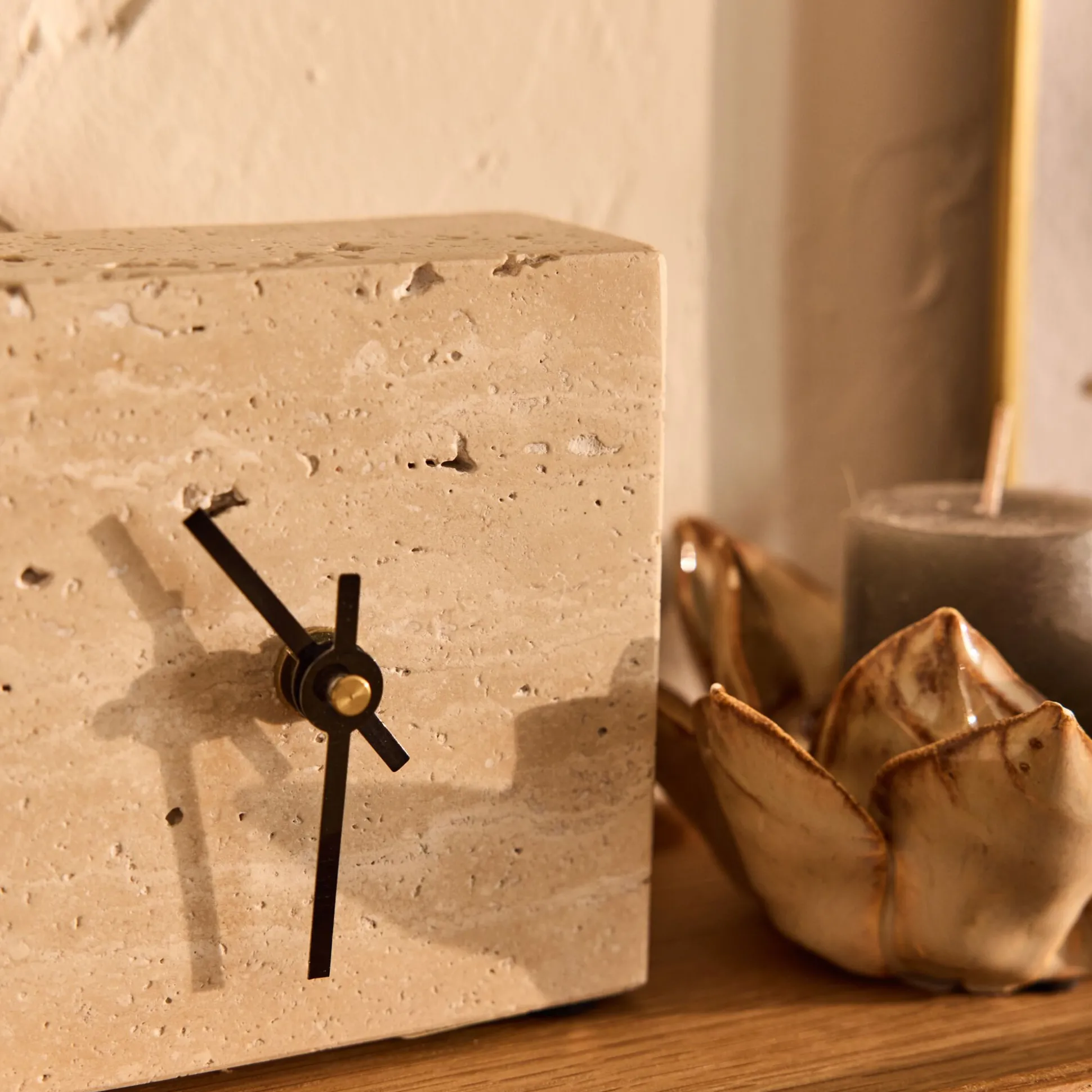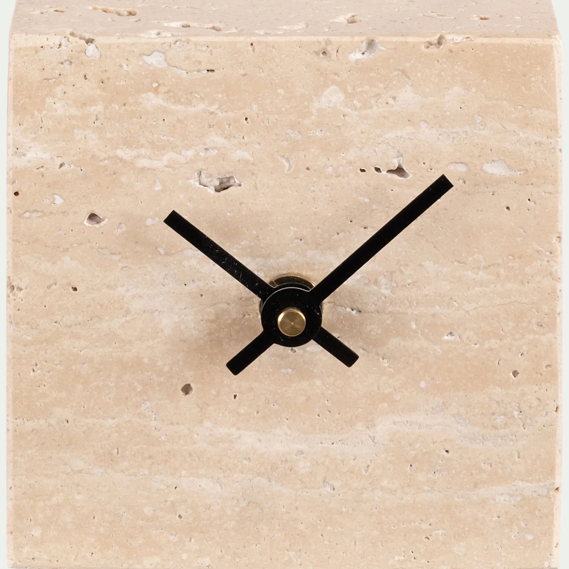 Pour une ambiance intemporelle, optez pour cette horloge à poser en travertin. Son design minimaliste et sa matière brute offrent une touche d’élégance naturelle à votre intérieur. Le travertin, avec ses aspérités et ses nuances uniques, fait de chaque horloge un objet singulier. Posée sur un bureau, une étagère ou une table de chevet, elle saura se fondre dans tous les styles de décoration, qu’il soit moderne, bohème ou classique.