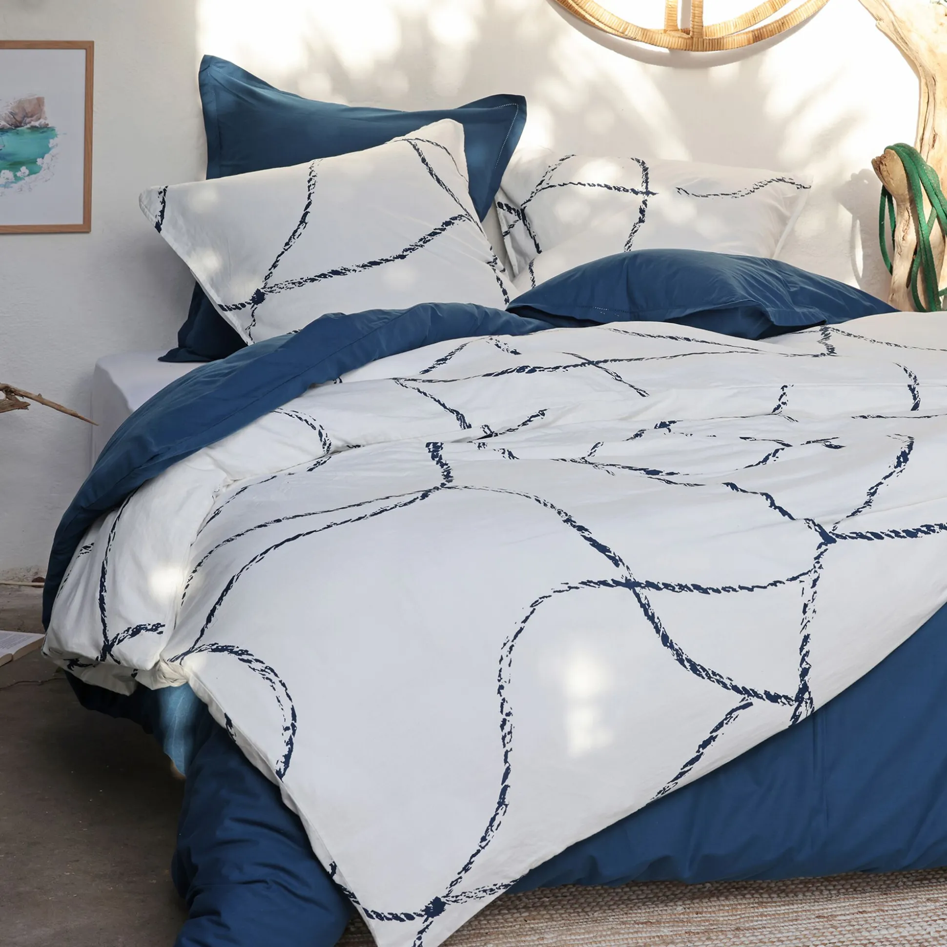 Plongez dans un cocon de douceur avec la parure de lit Alorso. Imaginez-vous enveloppé dans une housse de couette de 260×240 cm, accompagnée de deux taies d’oreiller assorties, le tout en coton flammé lavé, offrant une sensation de confort inégalé. Le motif bleu, évoquant un petit port de pêche, vous transporte dans un lieu apaisant. Une épaisse corde de bateau, habilement teintée dans le tissu blanc, ajoute une touche de caractère et de dynamisme à votre décor, évoquant des aventures en haute mer. Chaque nuit, plongez dans un sommeil réparateur et réconfortant, enveloppé dans cette parure qui transforme votre chambre en un havre de paix.
