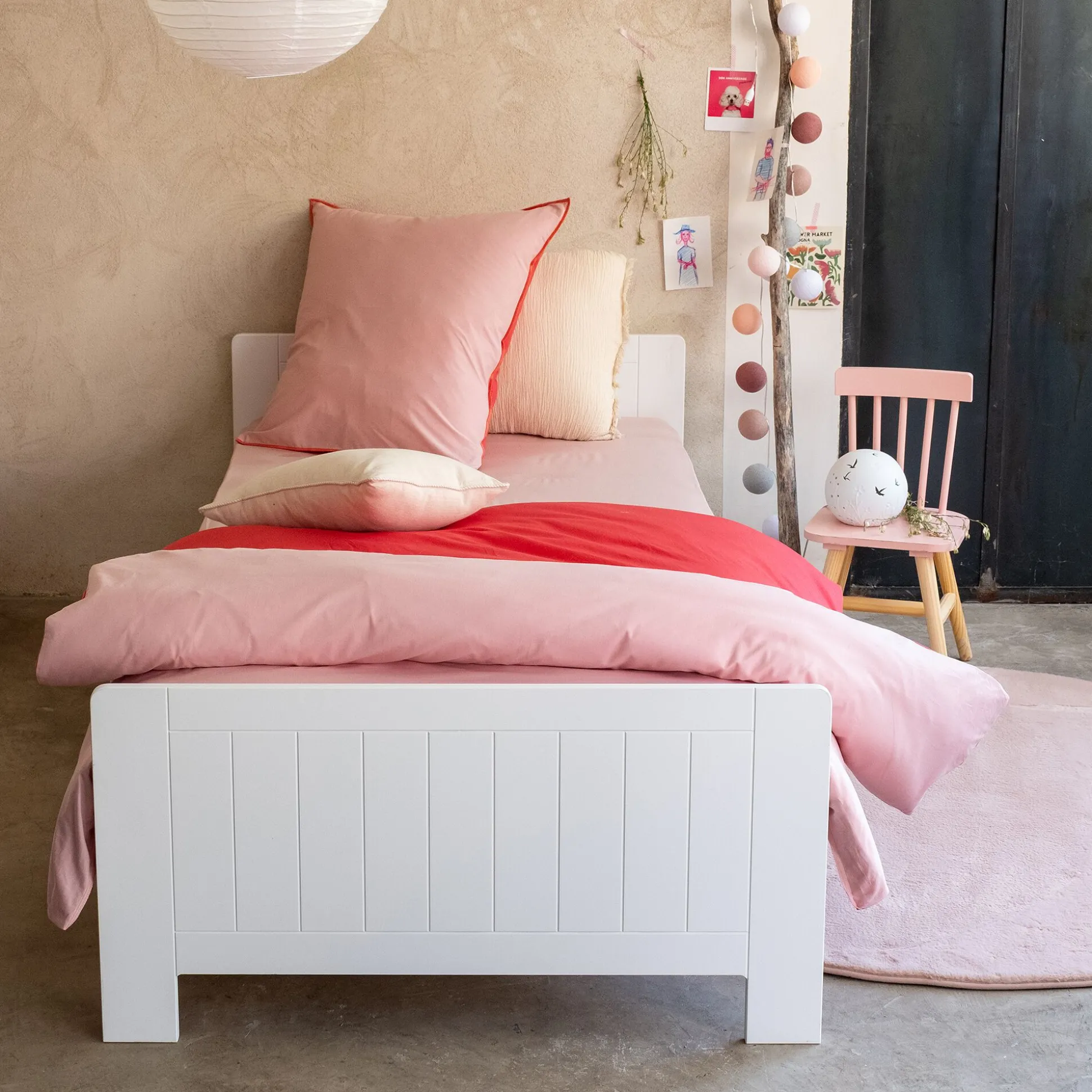 Housse de couette enfant 140x200cm et 1 taie d’oreiller 63x63cm en coton – rose