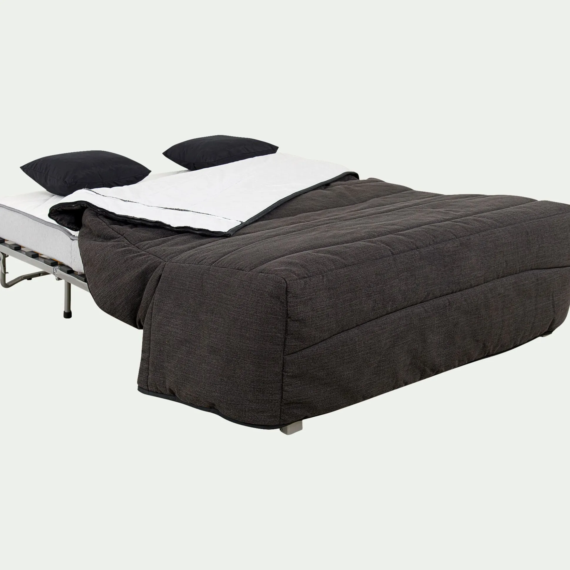 Cette housse conçue pour banquette vous permet de couvrir votre matelas afin de le préserver au mieux tout en apportant une touche déco à votre salon. En 160×200 cm, elle vous permet de recouvrir l’intégralité de votre canapé BZ grâce à un système de zip pour faciliter sa mise en place. En gris anthracite, elle donne un côté sophistiqué à votre intérieur. Garnie de 225 grammes de ouate, cette housse et ses deux housses de coussins rectangulaires seront parfaites pour votre canapé.