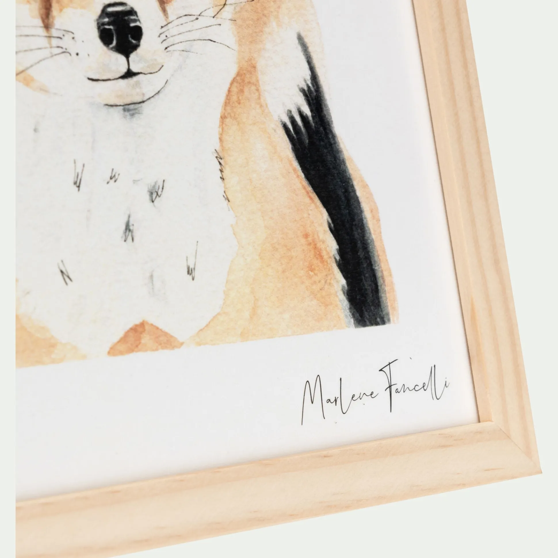 Ce cadre aux motifs animaux et son design confectionné avec la délicate technique de l‘aquarelle constituent une parfaite décoration murale pour la chambre de votre enfant. Ici, au format A4, ce dessin, réalisé par l’artiste française Marlène Fancelli, est encadré dans un beau cadre en bois de pin et protégé par une vitre de plexiglas. Avec ces deux renards enlacés, ce cadre au format A4 se marie avec des tons chauds comme des coloris pastel. Associez cette affiche avec d’autres cadres de la même collection et quelques miroirs afin de créer une décoration harmonieuse et cocooning qui saura apaiser votre bambin. Grâce à la présence d’accroches au dos du cadre, vous pourrez l’installer en toute simplicité.