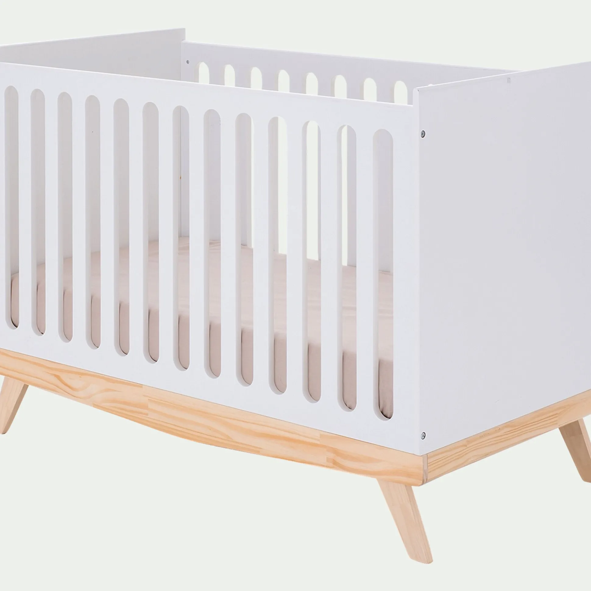 Le lit bébé Anaé mêle bois naturel et barreaux blancs pour créer un cocon doux, chaleureux et facile à intégrer dans une chambre mixte. Son design épuré et ses teintes lumineuses en font un essentiel au style intemporel. Pratique, il s’adapte à la croissance de bébé grâce à son sommier réglable sur deux hauteurs : en position haute pour les premiers mois, puis en position basse quand l’enfant commence à se redresser. Un lit à barreaux pratique et esthétique, pensé pour accompagner les premiers instants de vie en toute sérénité.