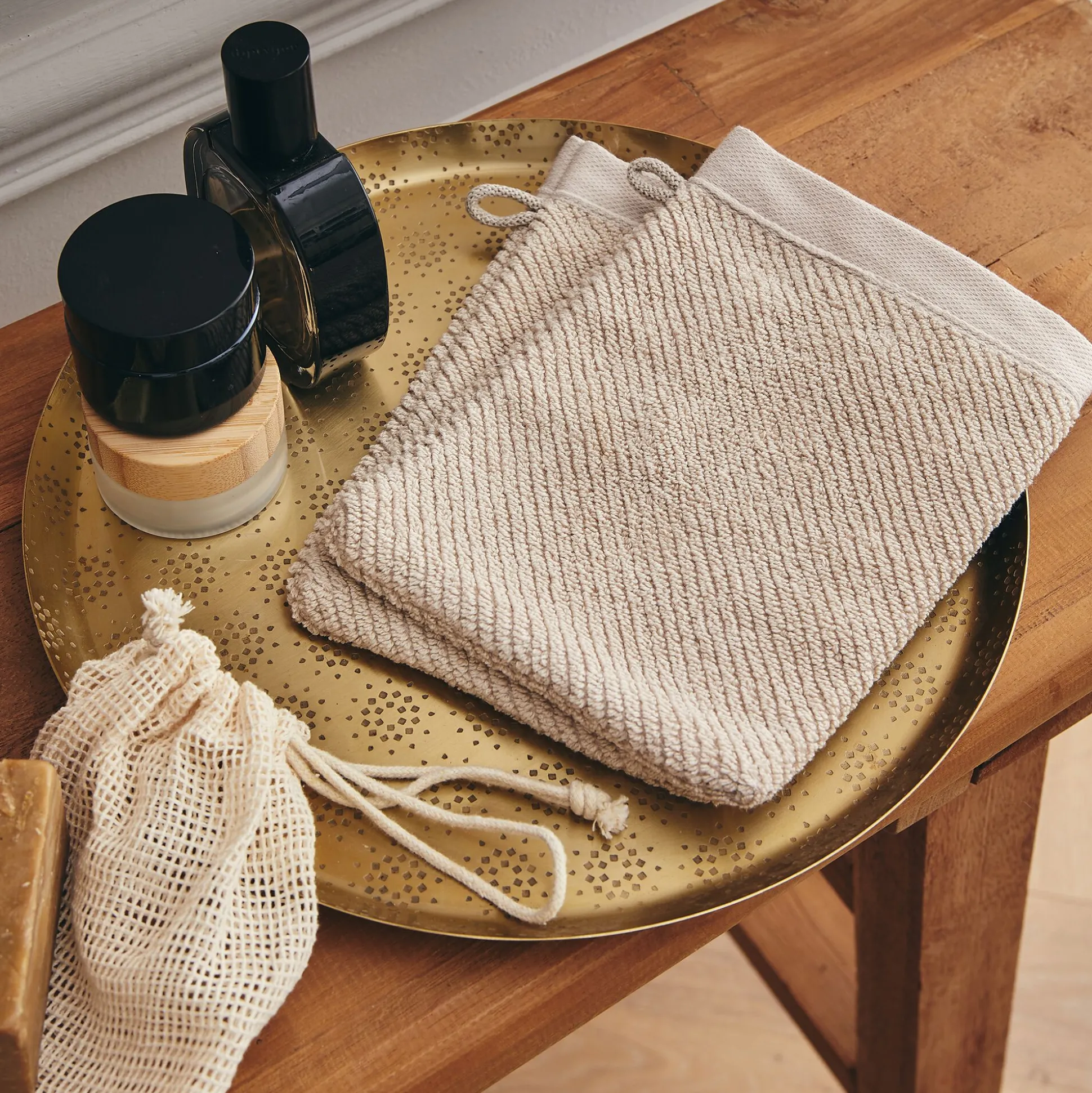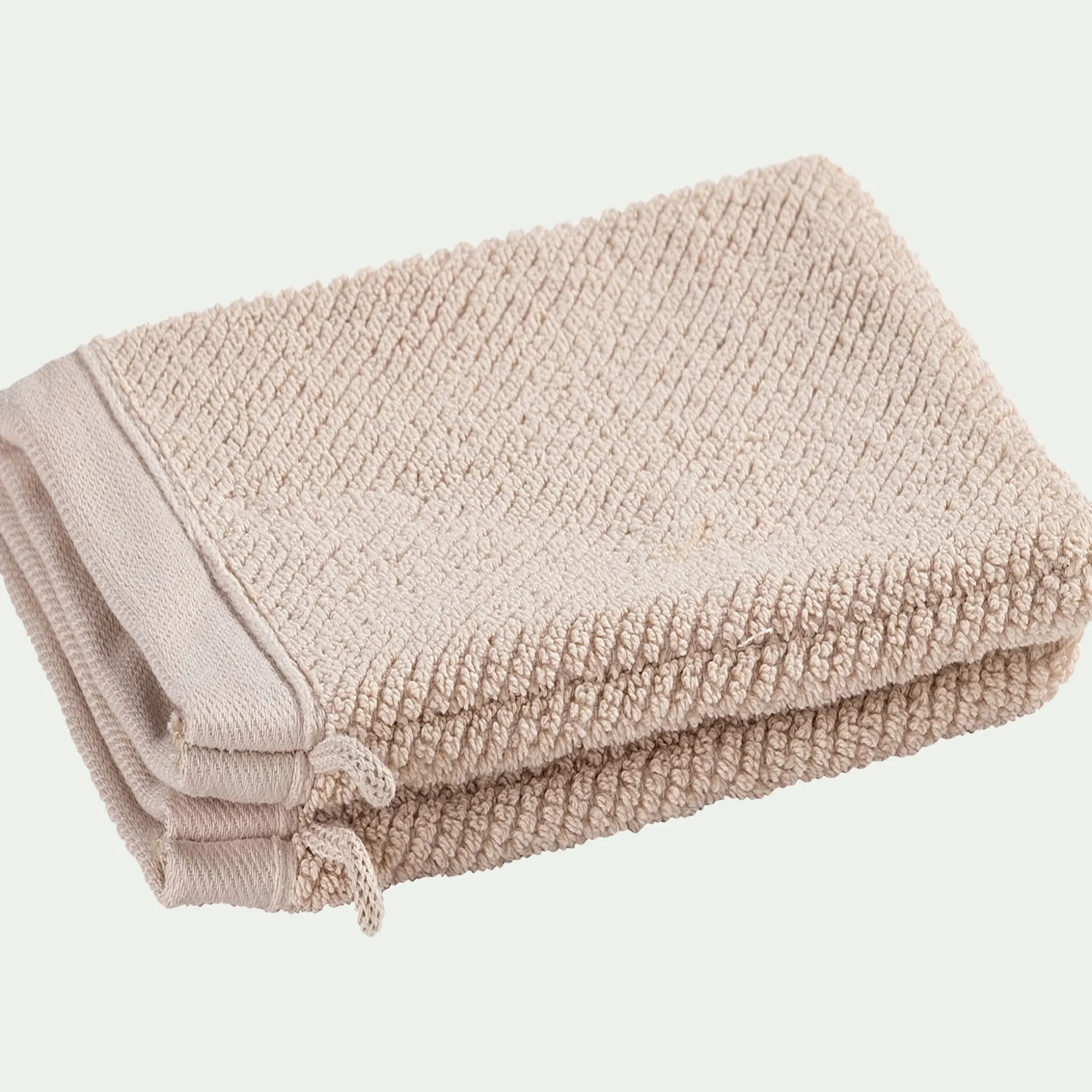Lot de 2 gants de toilette en bouclettes de coton bio – beige alpilles 16x21cm