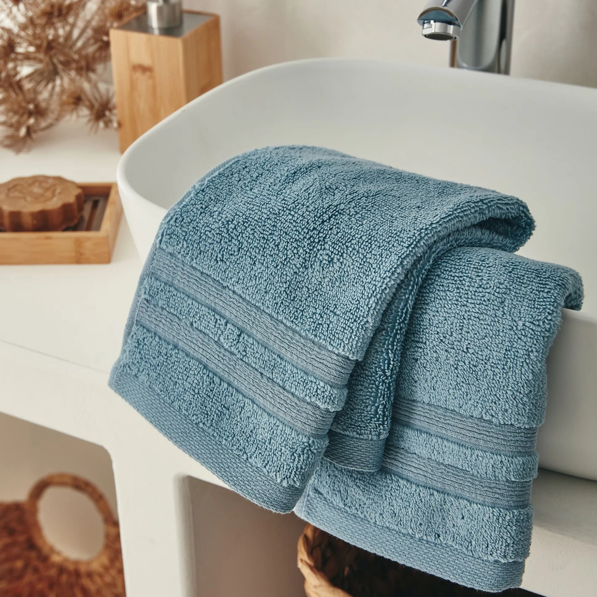 Lot de 2 serviettes invité bouclette en coton – bleu autan 30x50cm