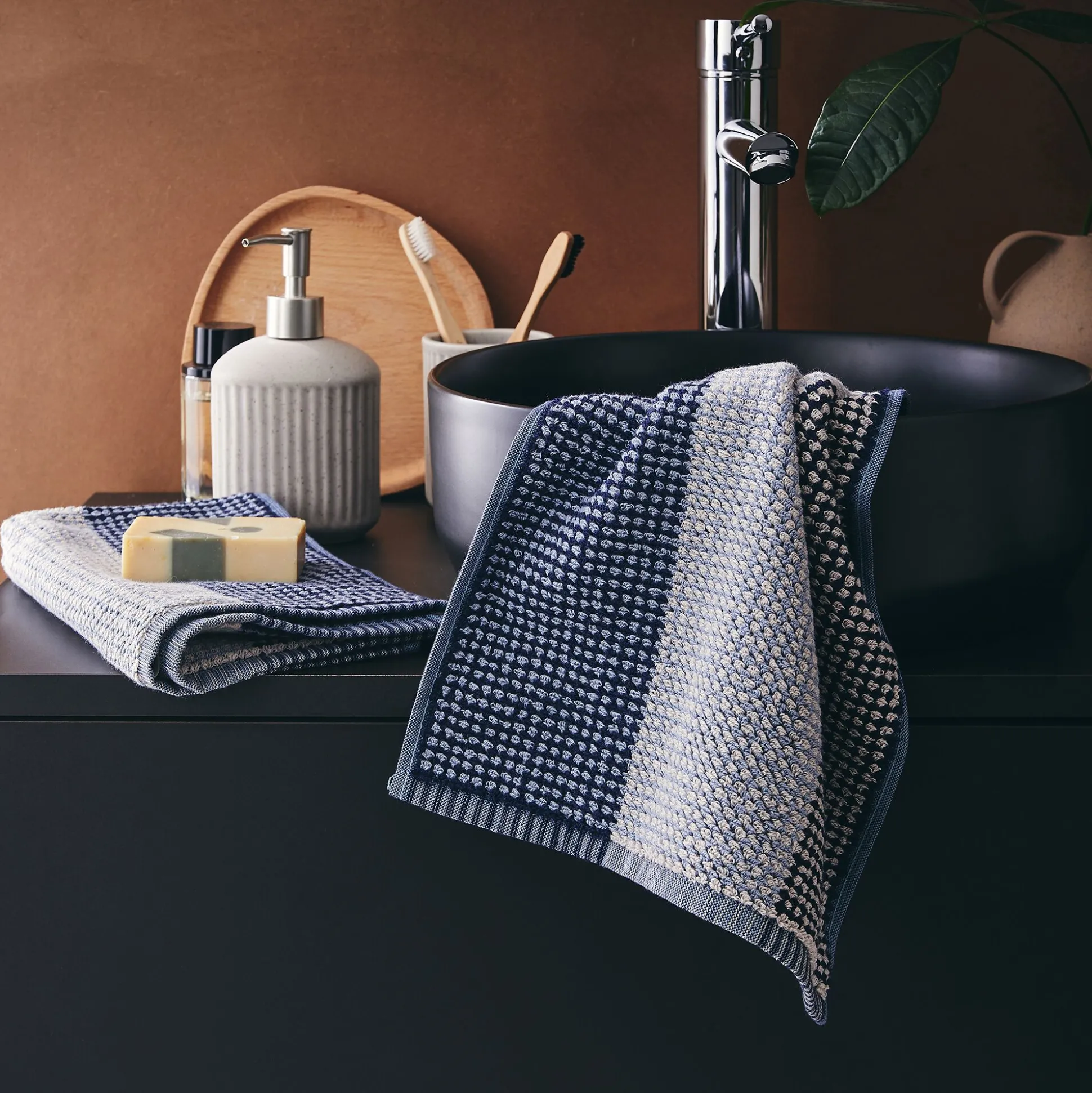 Lot de 2 serviettes invité bouclette jacquard en coton – bleu 30x50cm