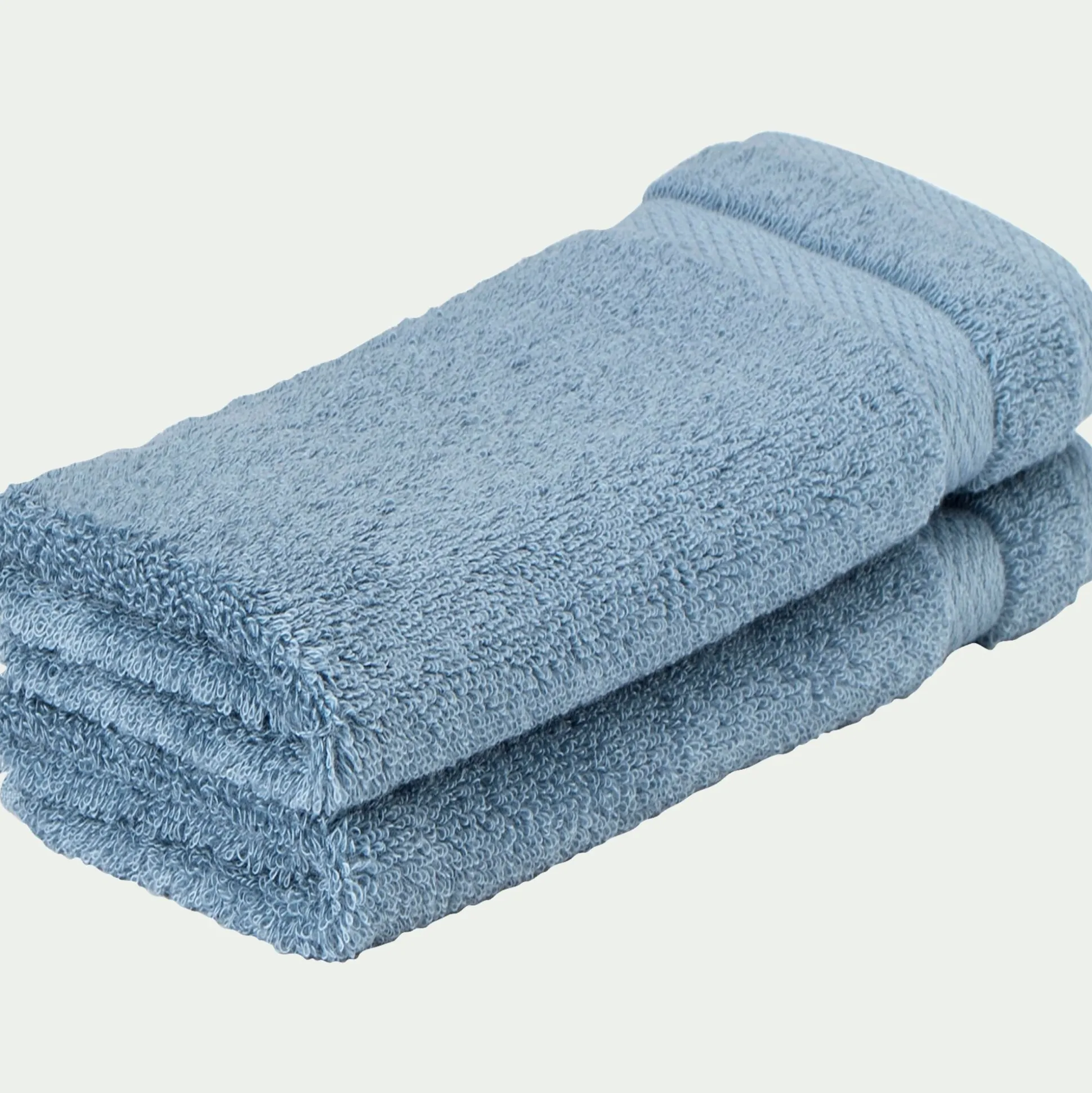 Lot de 2 serviettes invité en coton peigné – bleu autan 30x50cm