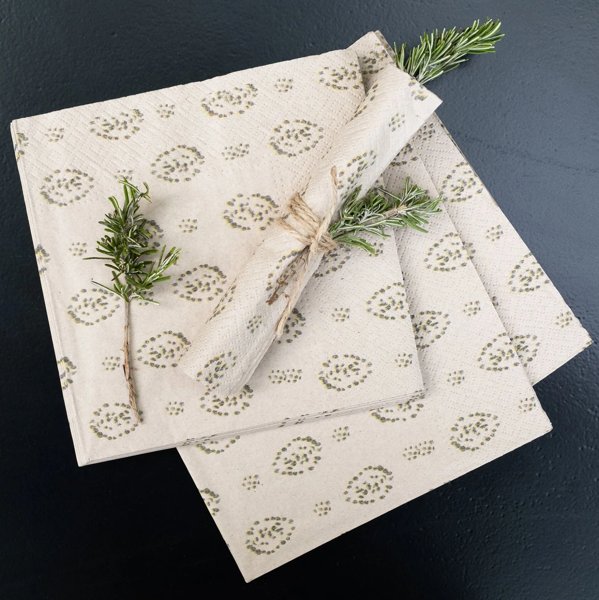 Une teinte neutre de beige, parsemé d’un motif amande tendre vert olivier pour ces serviettes en papier qui apportent une belle touche déco empreinte de délicatesse à vos repas. On dresse une belle table improvisée qui ne fait pas l’impasse sur le style grâce à ces serviettes de table comme touche finale.