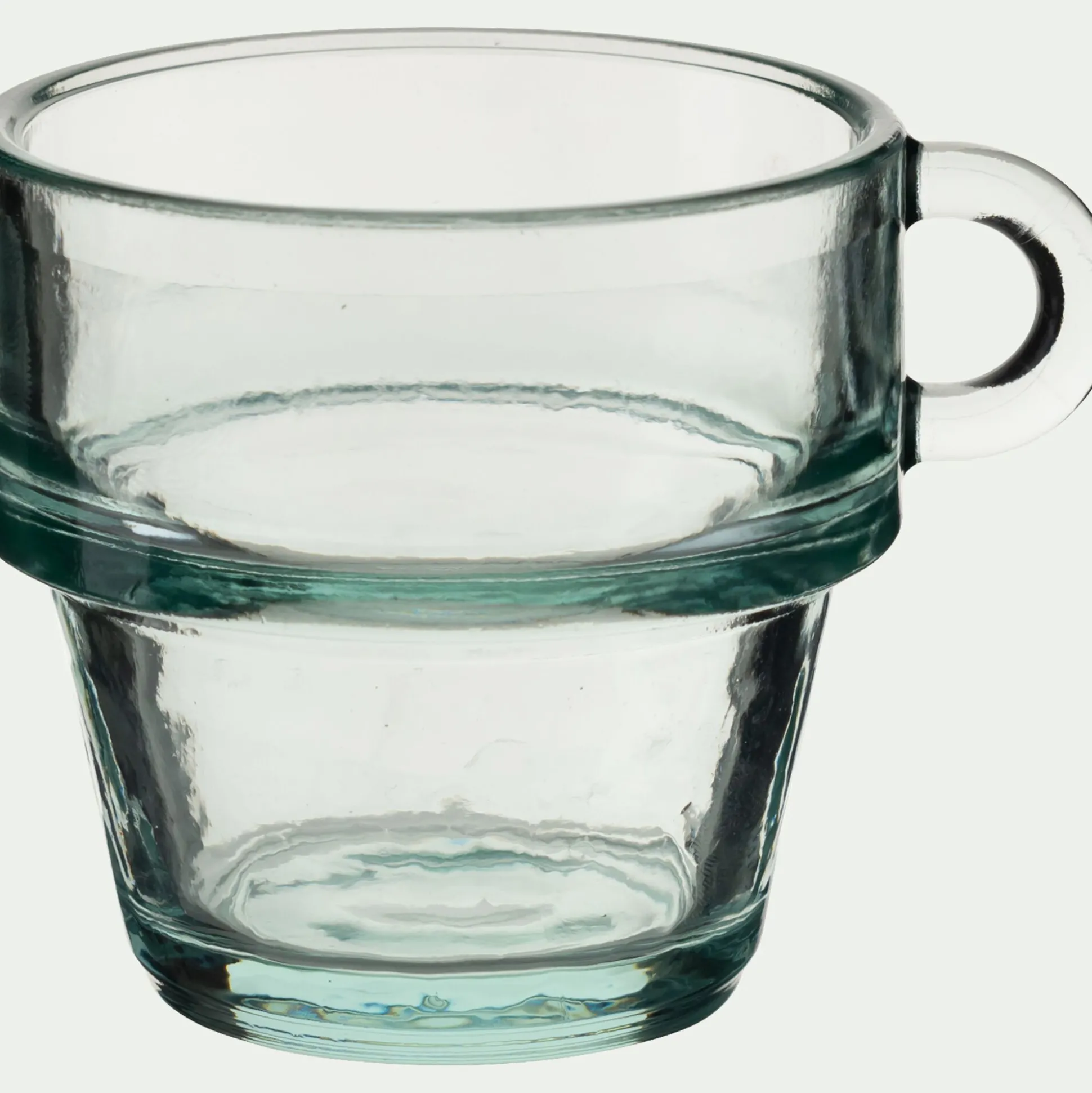 Découvrez ce lot de 4 tasses en verre, pour savourer vos boissons chaudes. La transparence et le design intemporel de ses tasses de 10 cl apportent une touche de raffinement à votre table de petit-déjeuner. Fabriquée en Espagne, cette collection de vaisselle au charme unique vous accompagnera à tous moments de la journée.