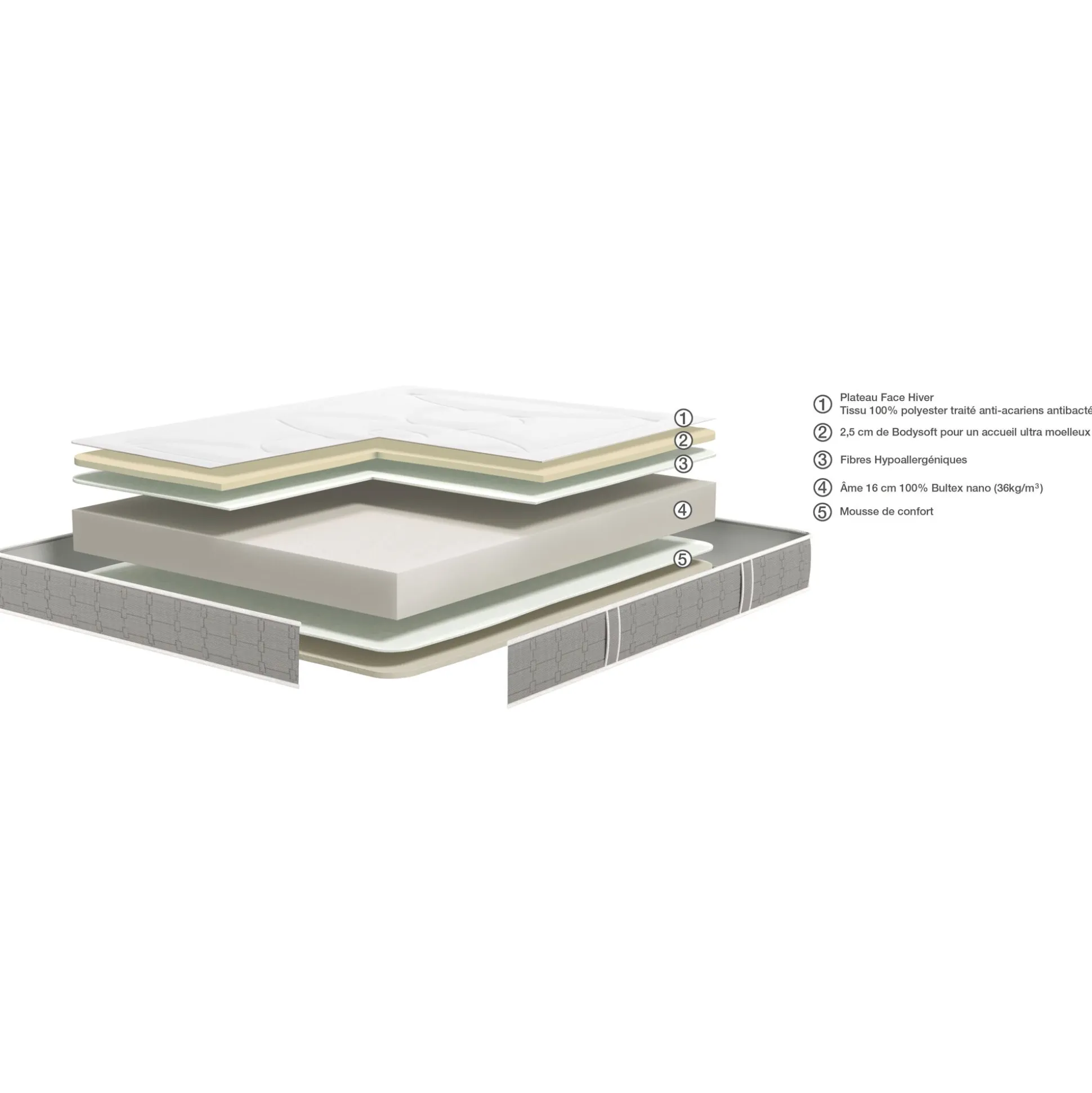 Ame : 16cm de mousse 100% Bultex nano 36kg/m3.