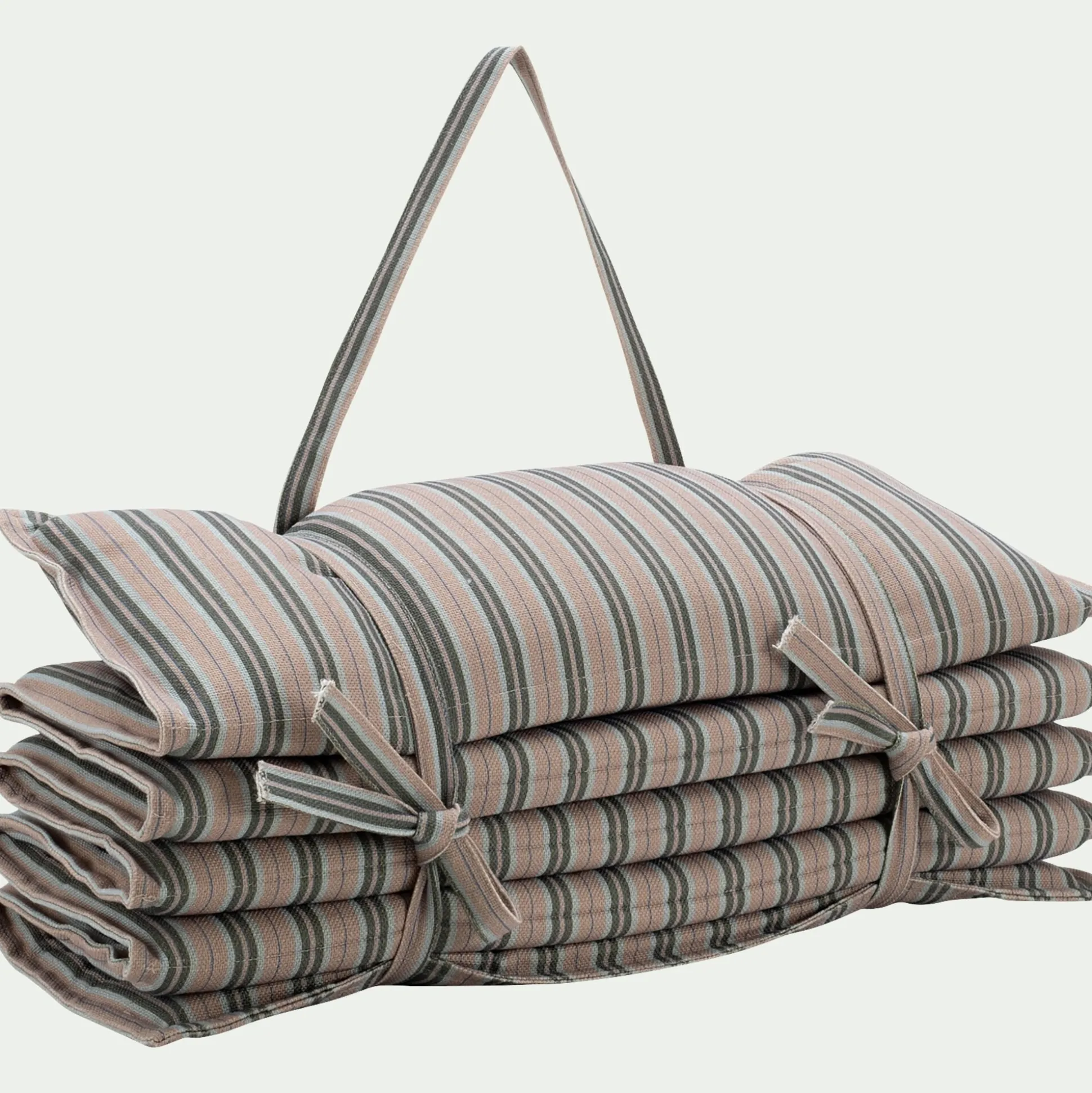 Emportez votre confort partout avec le matelas de plage transportable Tenerife. Que ce soit dans votre jardin ou sur le sable, ce matelas à rayures s’adapte à toutes vos envies de détente. Il s’installe aussi bien sur un transat qu’à même le sol, offrant un véritable havre de relaxation. Son garnissage en mousse et son coussin intégré épousent votre morphologie pour un confort optimal sous le soleil. Pratique et fonctionnel, ce matelas vert se plie facilement et se maintient fermé grâce à ses nouettes. Sa poignée intégrée facilite son transport, et son format compact permet un rangement sans encombrement. Un accessoire malin pour une décoration extérieure harmonieuse !
