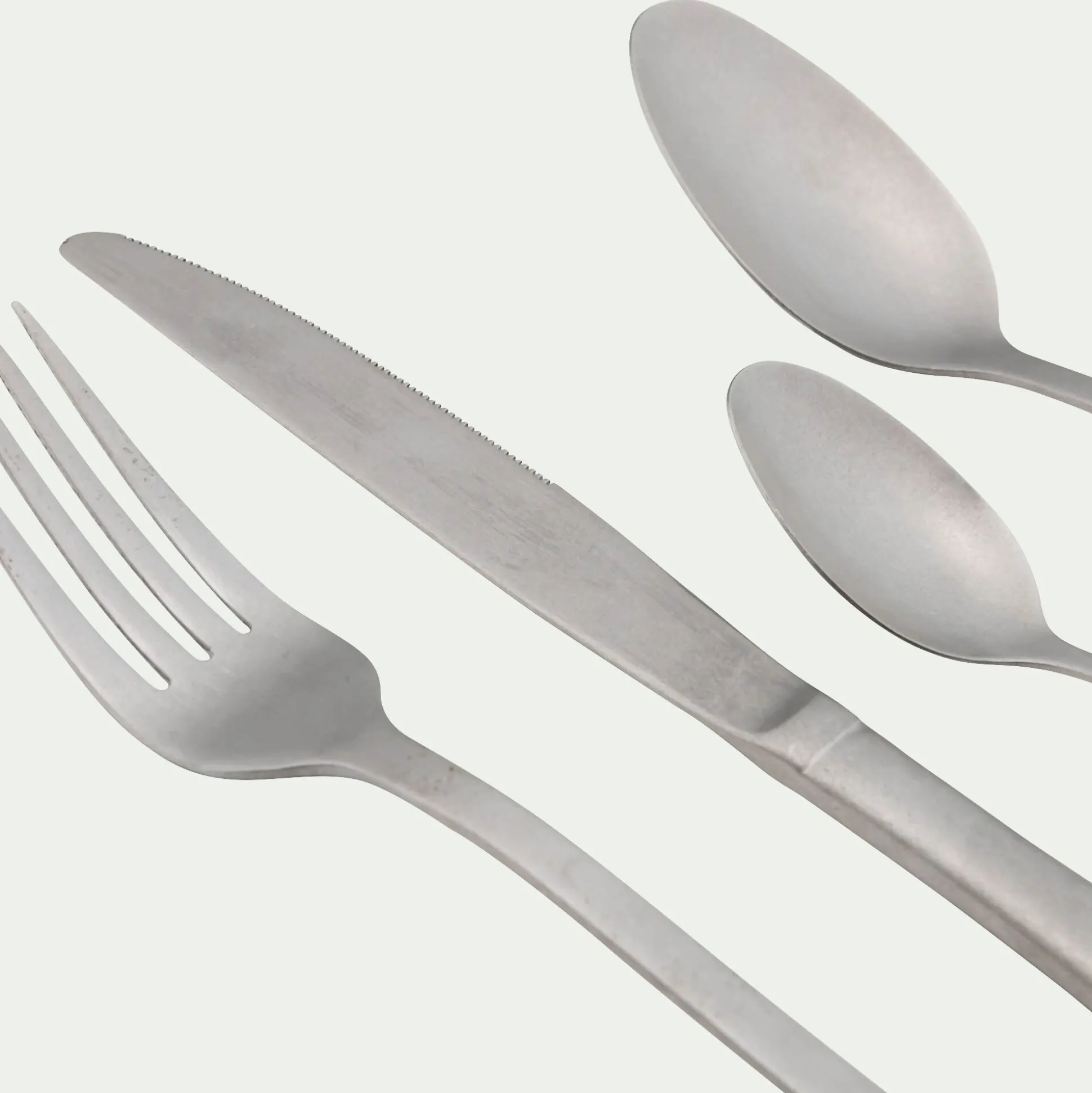 Apportez une touche de charme et de raffinement à vos repas avec cette ménagère 24 pièces. Composée de 6 fourchettes, 6 couteaux, 6 cuillères à soupe et 6 petites cuillères, cette collection de couverts séduit par son design épuré. Confectionnés en acier inoxydable avec une finition subtilement mate, ils offrent un style résolument moderne. Pratiques et élégants, ces 24 couverts en inox sont compatibles avec le lave-vaisselle, facilitant ainsi leur usage au quotidien.
