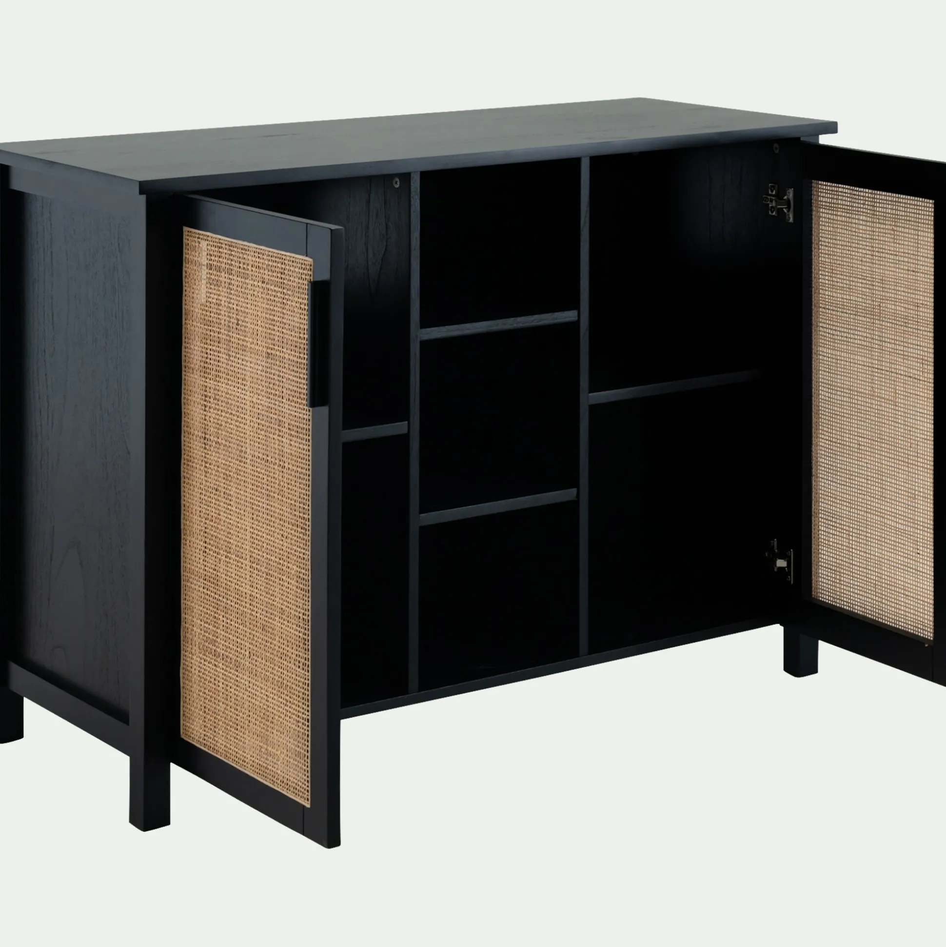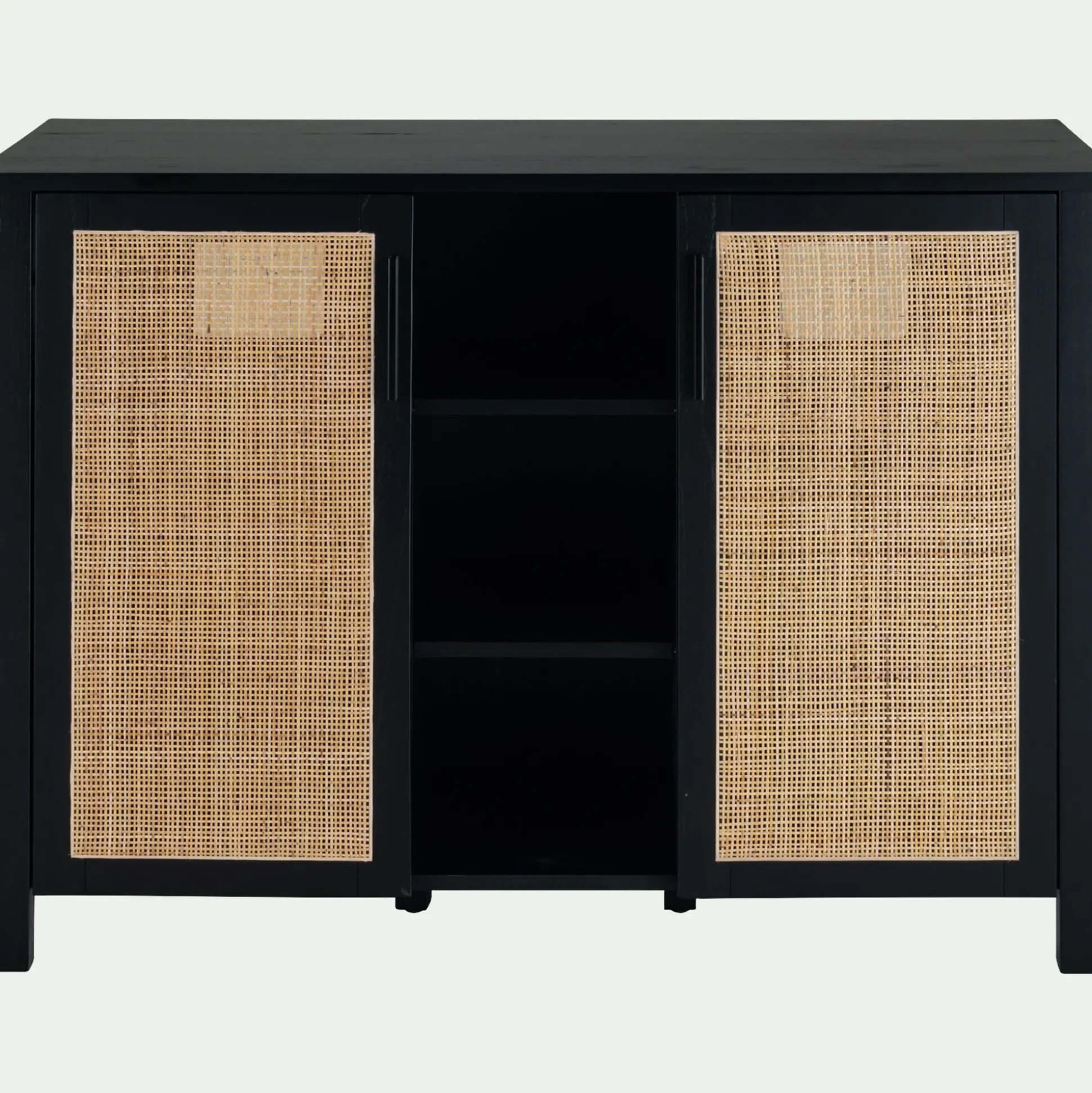 Optez pour meuble sous-vasque double comme pièce maîtresse de votre salle de bain. En bois de cèdre, avec 2 portes en cannage, ce meuble se distingue par son style et son design. Disposant au centre de 2 petites tablettes offrant 3 espaces de rangement, ainsi que 2 autres espaces plus larges derrière chaque porte, vous aurez largement de quoi disposer vos produits et autres accessoires. Laissez-vous séduire par le reste de la gamme afin de créer un ensemble de mobilier de salle de bain authentique et plein de caractère.