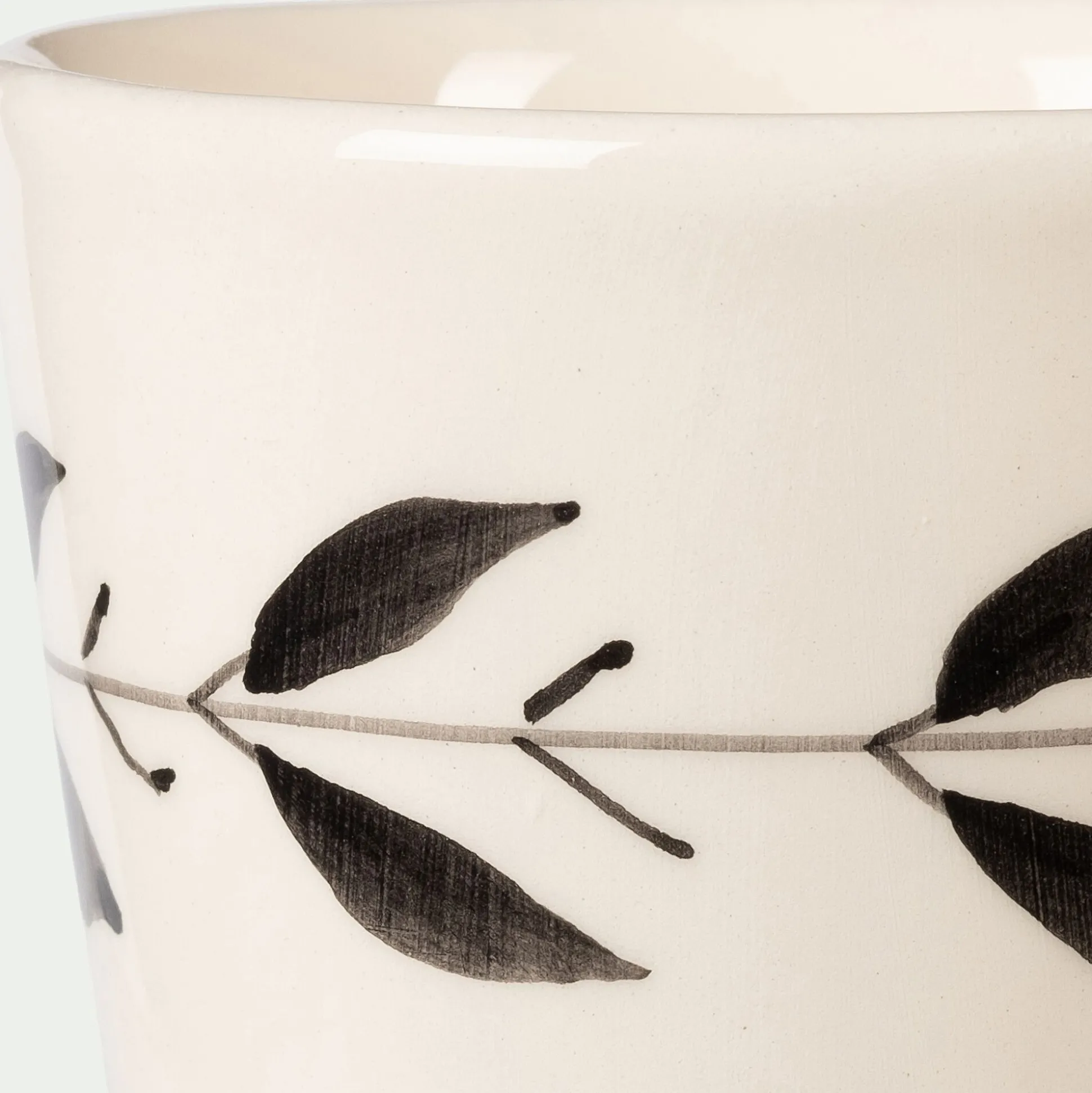 Ce beau mug aux consonnances grecques vous transporte vers les iles méditerranéennes. Ses courbes intemporelles s’accompagnent d’un motif végétal, finition noire qui se découpe sur la surface blanche de ce mug en faïence. Pour vos thés, vos cafés ou vos tisanes, le mug Kissos présente avec élégance toutes vos boissons. Un indispensable de l’art de la table qui vous accompagne au quotidien.